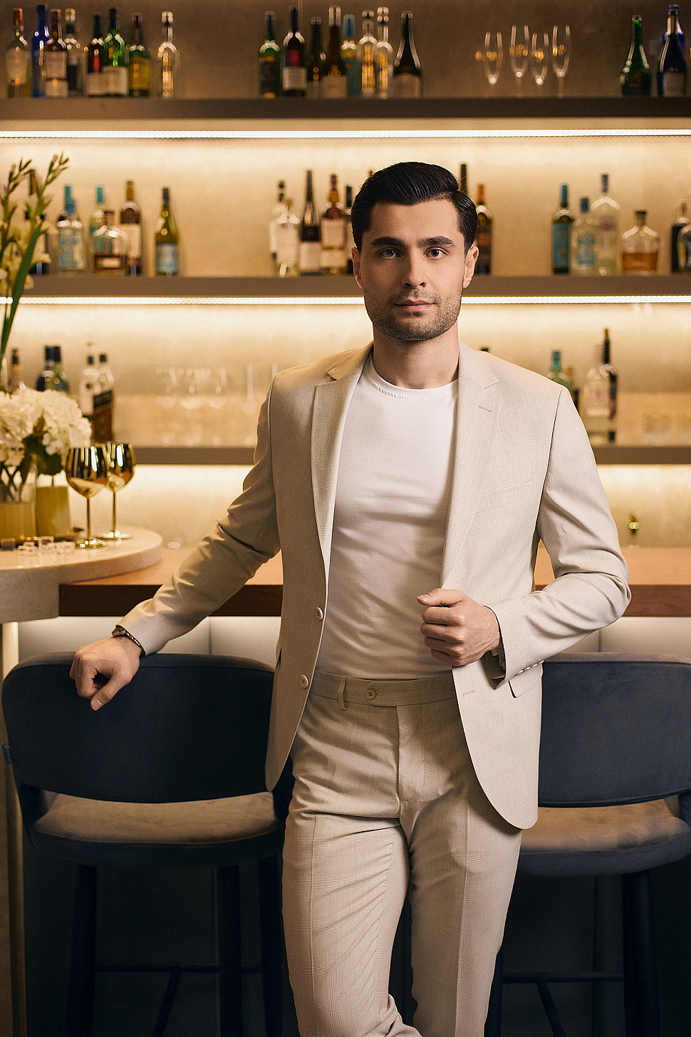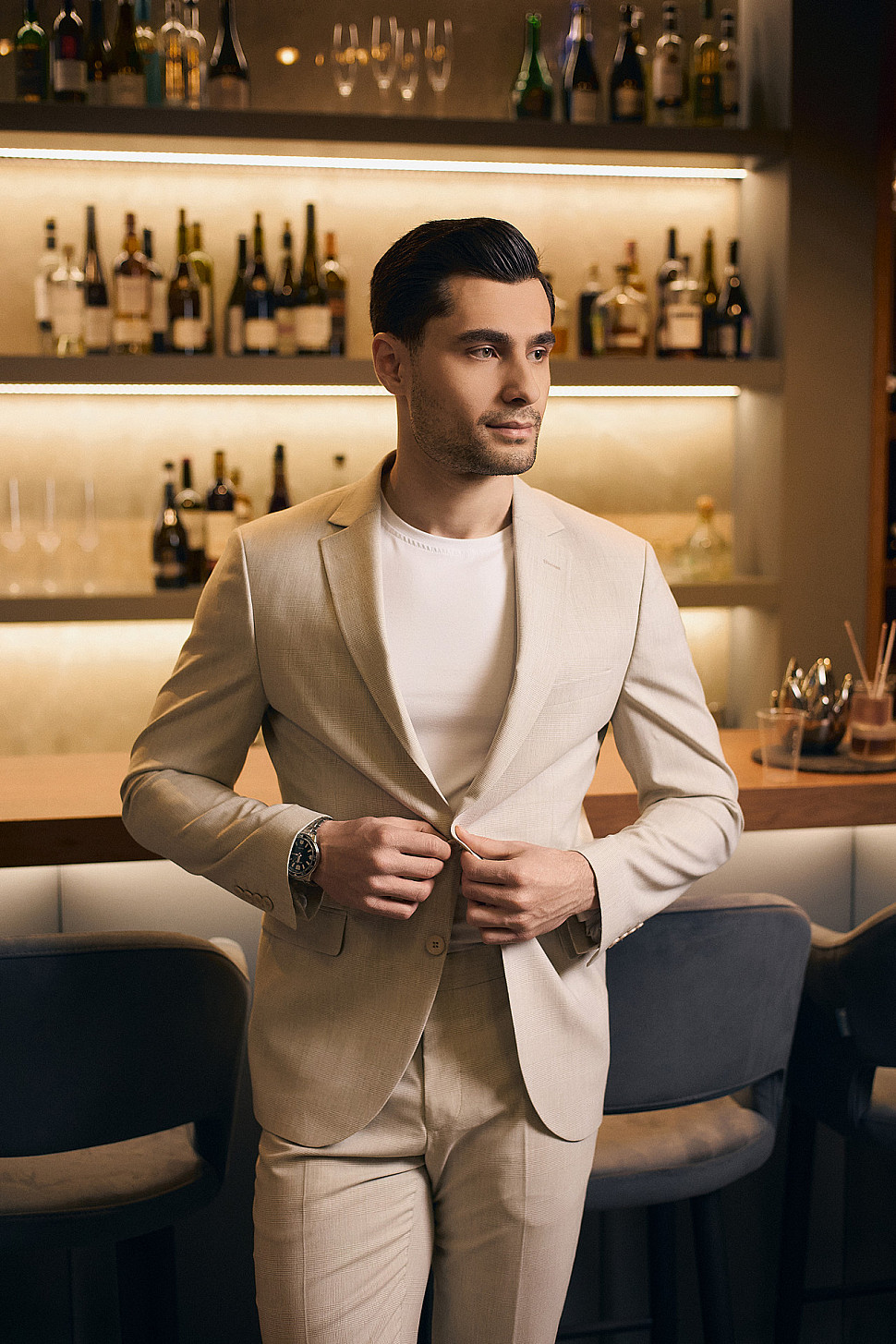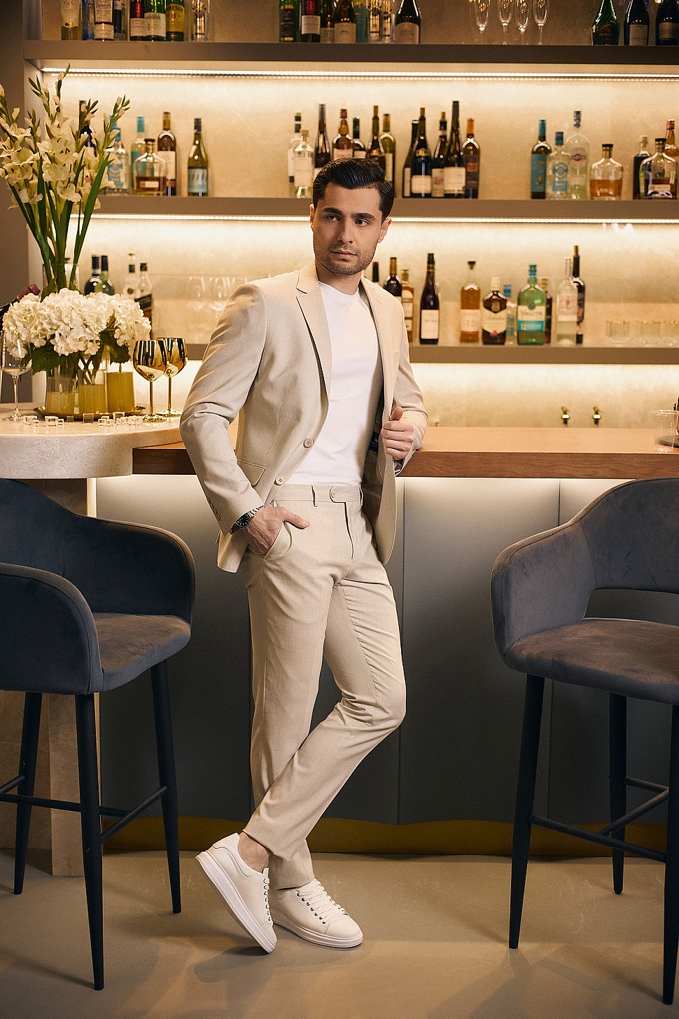 Костюм двойка бежевого цвета, повседневный и классический образ