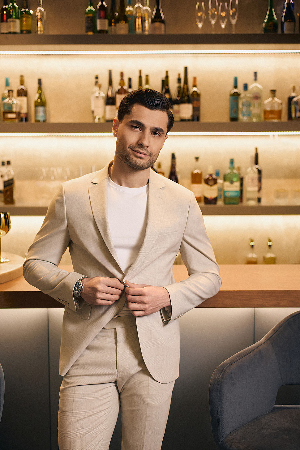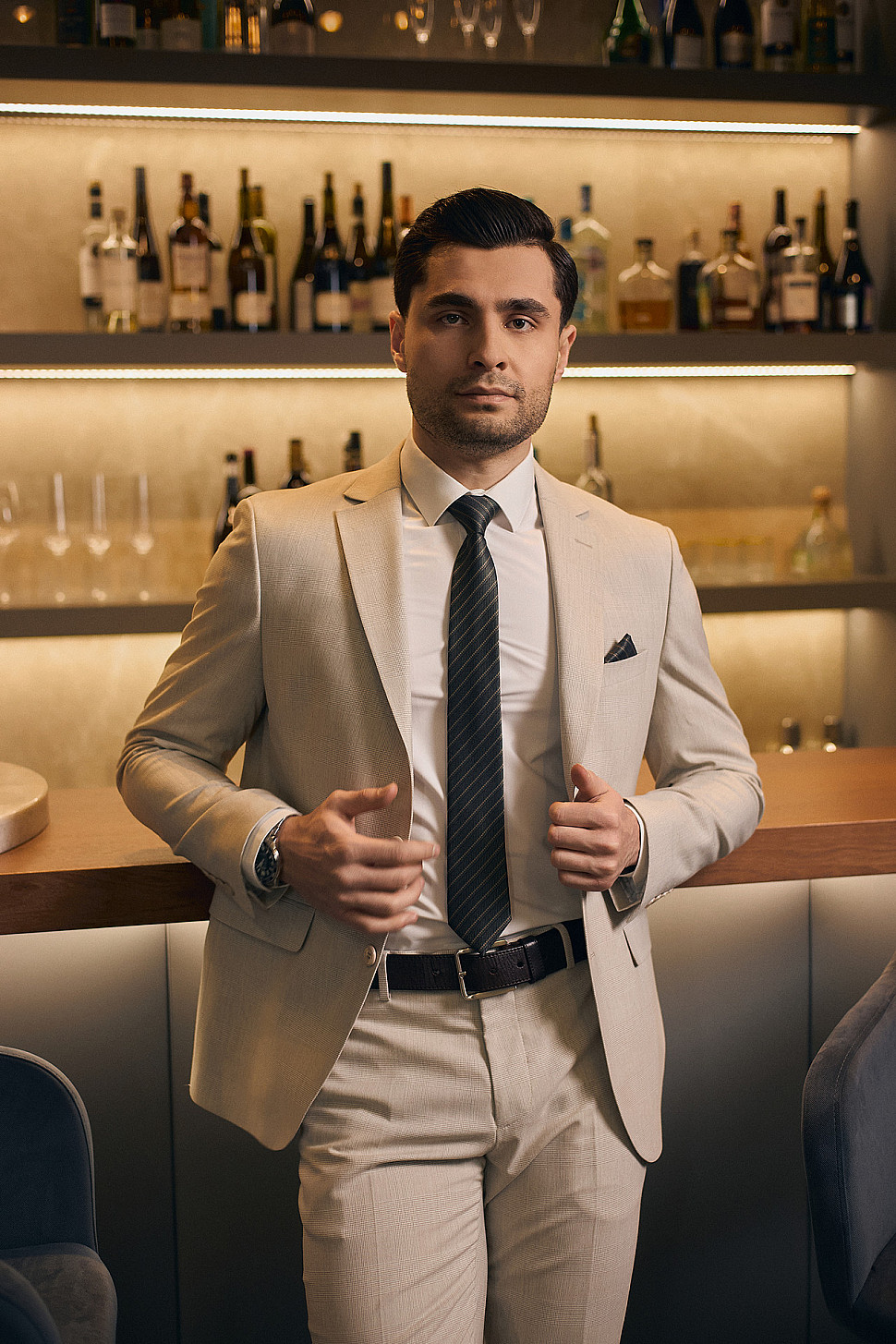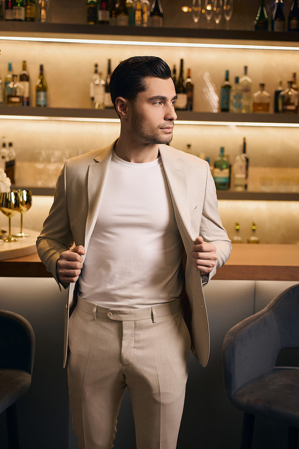 Костюм двойка бежевого цвета, повседневный и классический образ