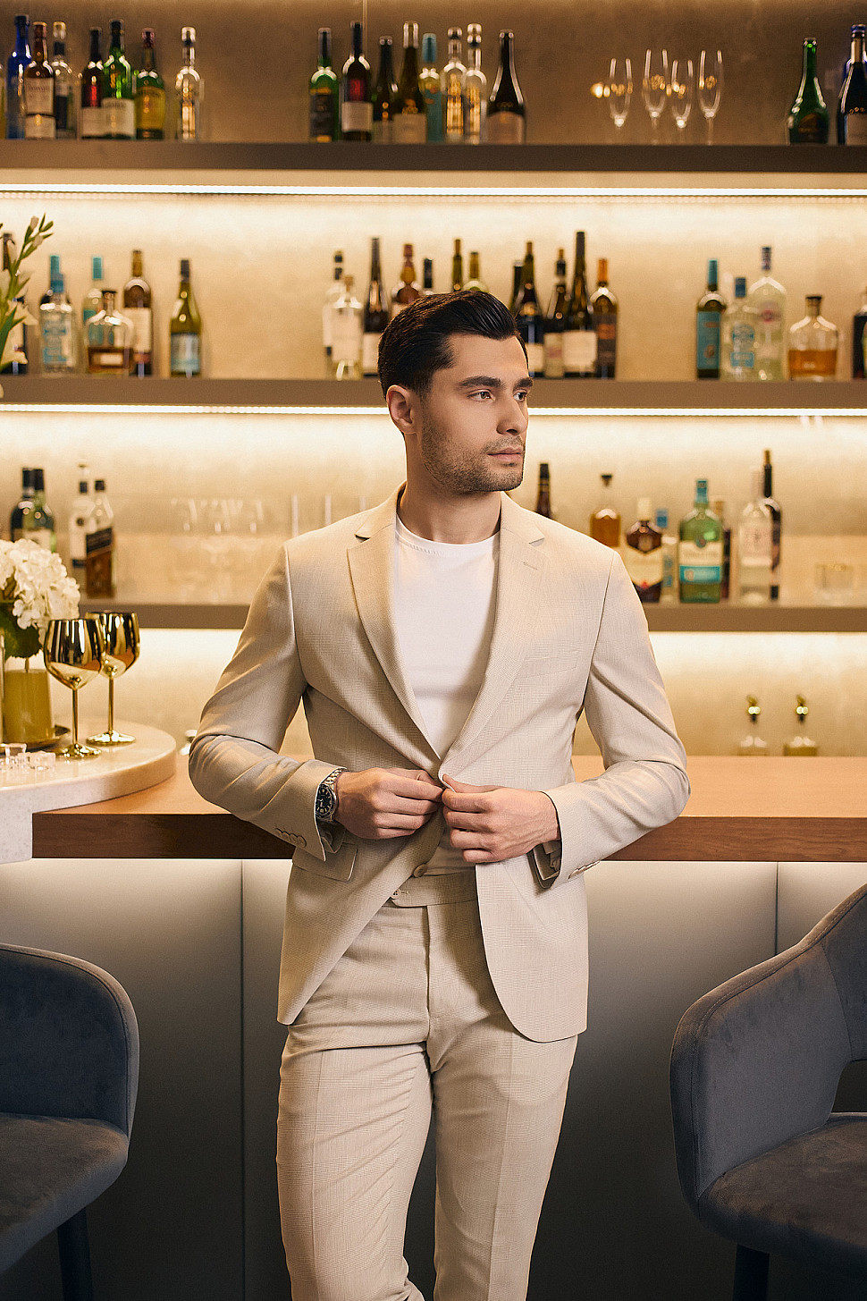 Костюм светло-коричневый двойка в клетку, повседневный и классический образ
