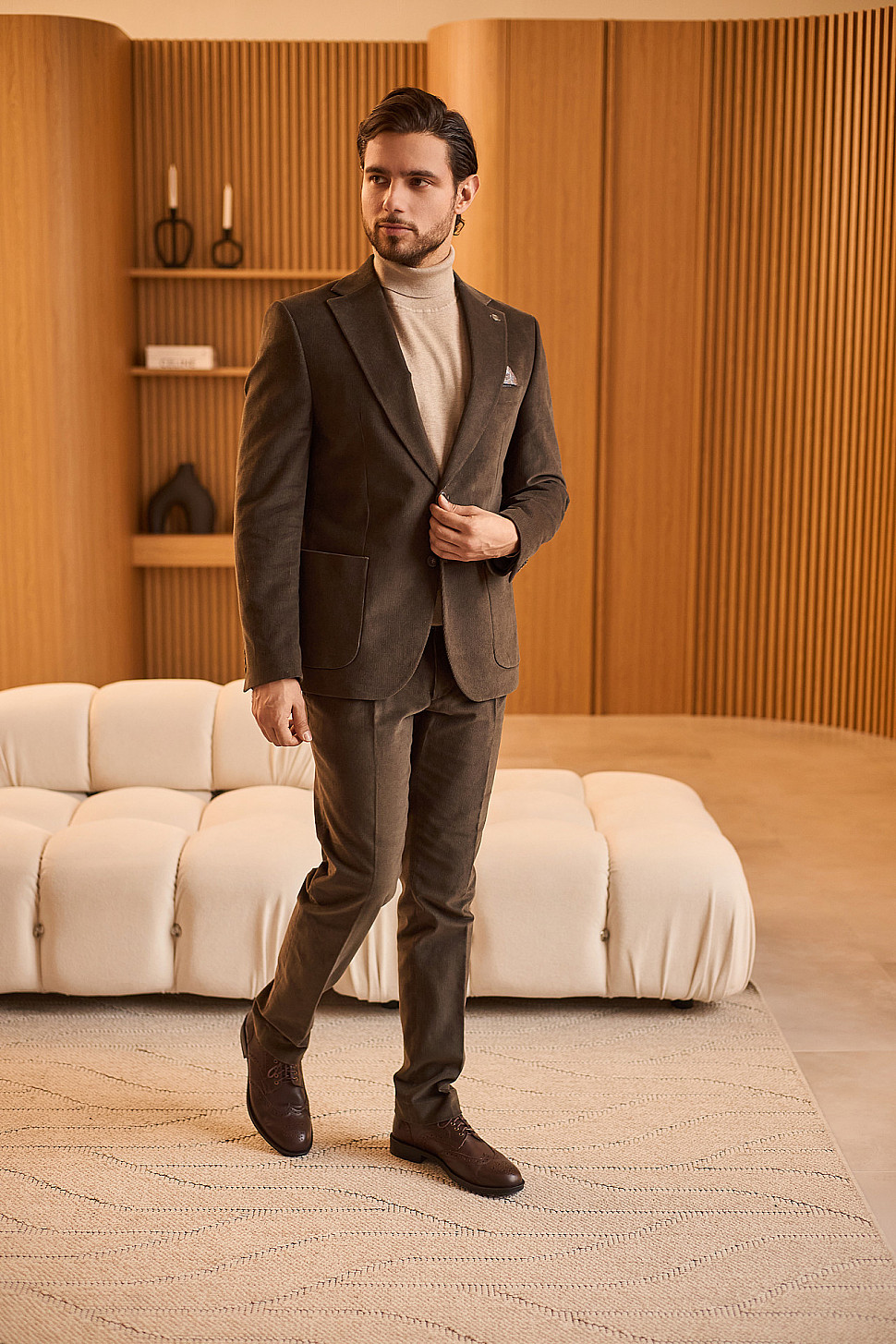 Мужской костюм двойка коричневого цвета в стиле кэжуал