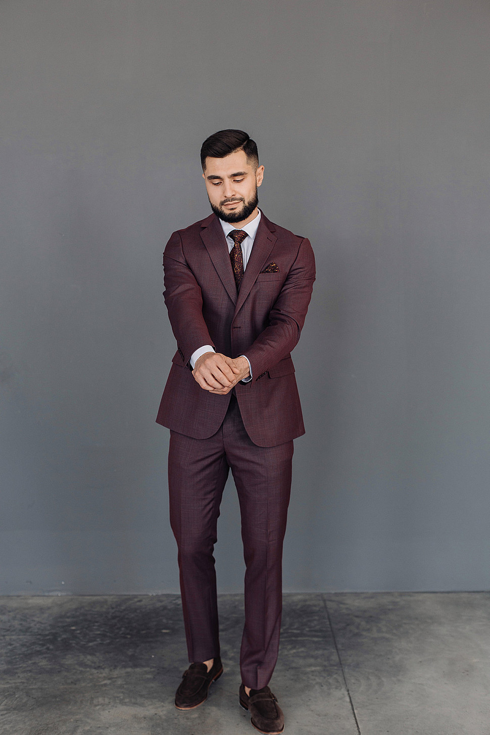 Мужской костюм двойка бордового цвета