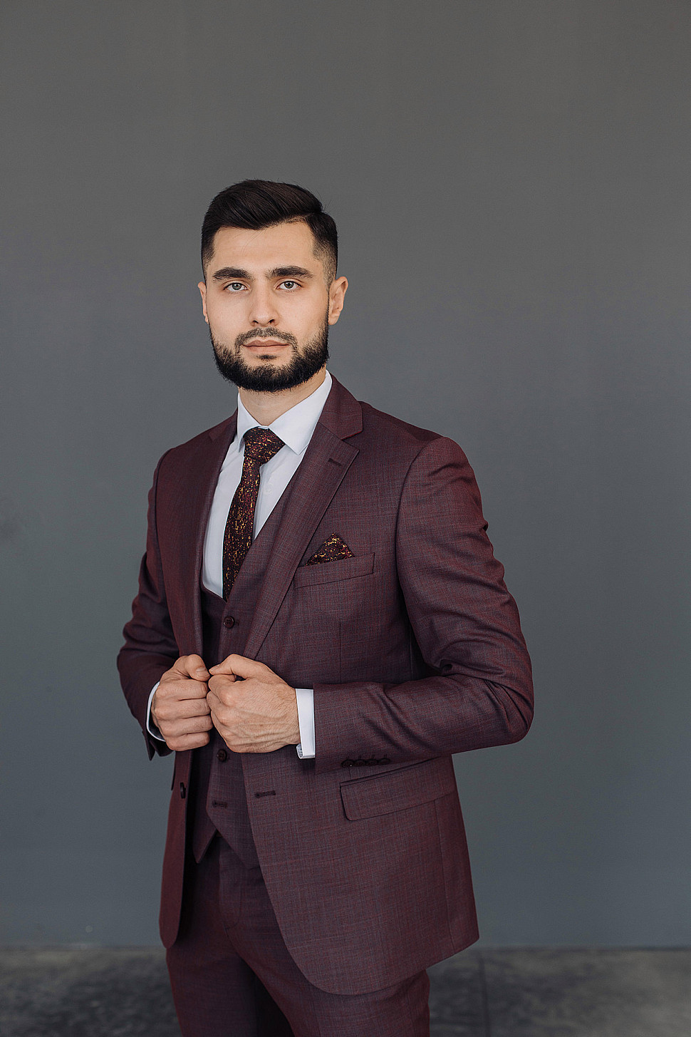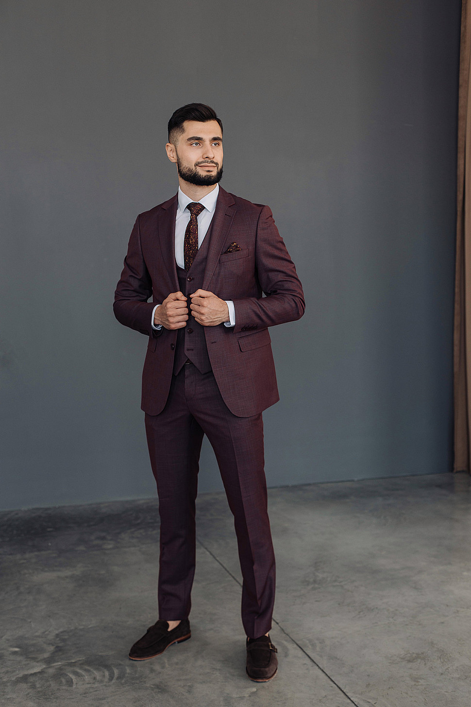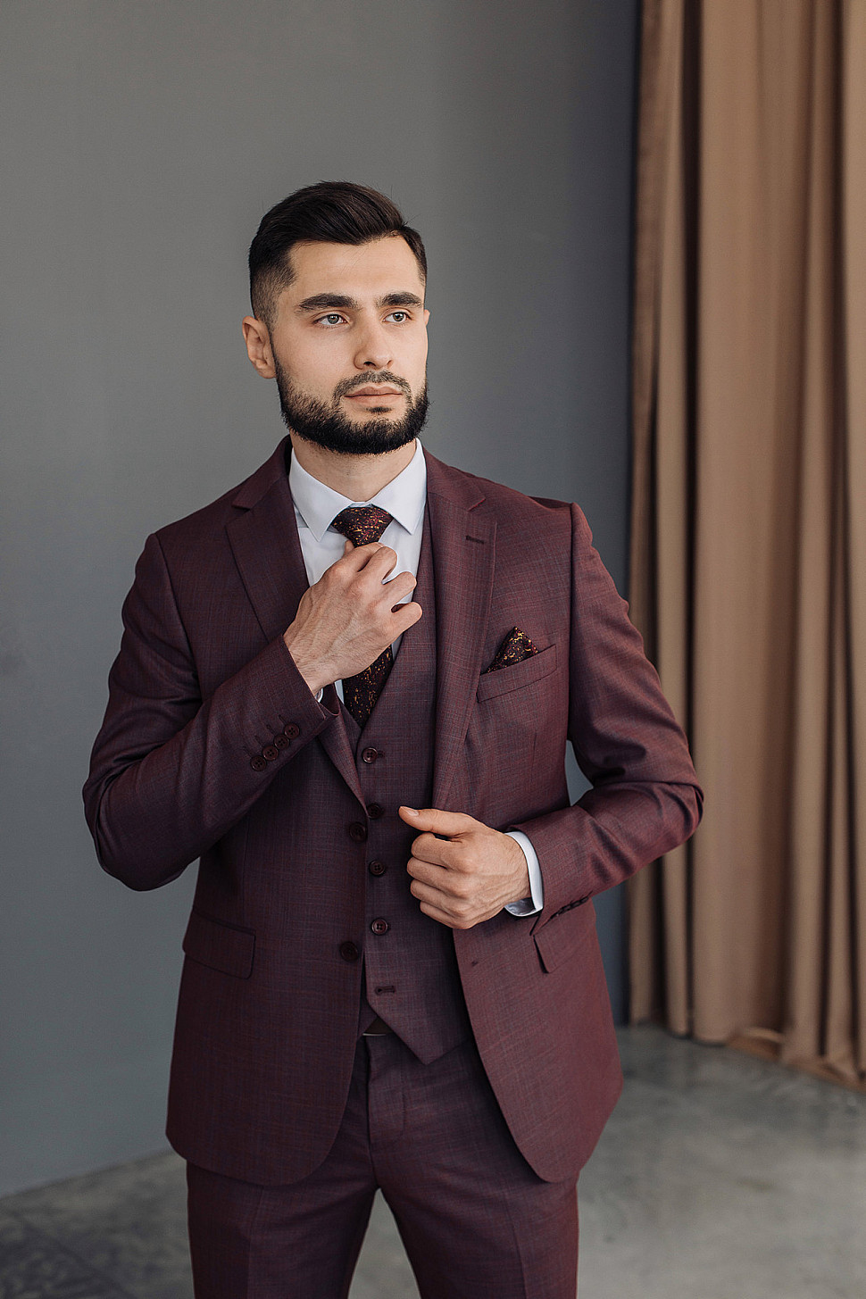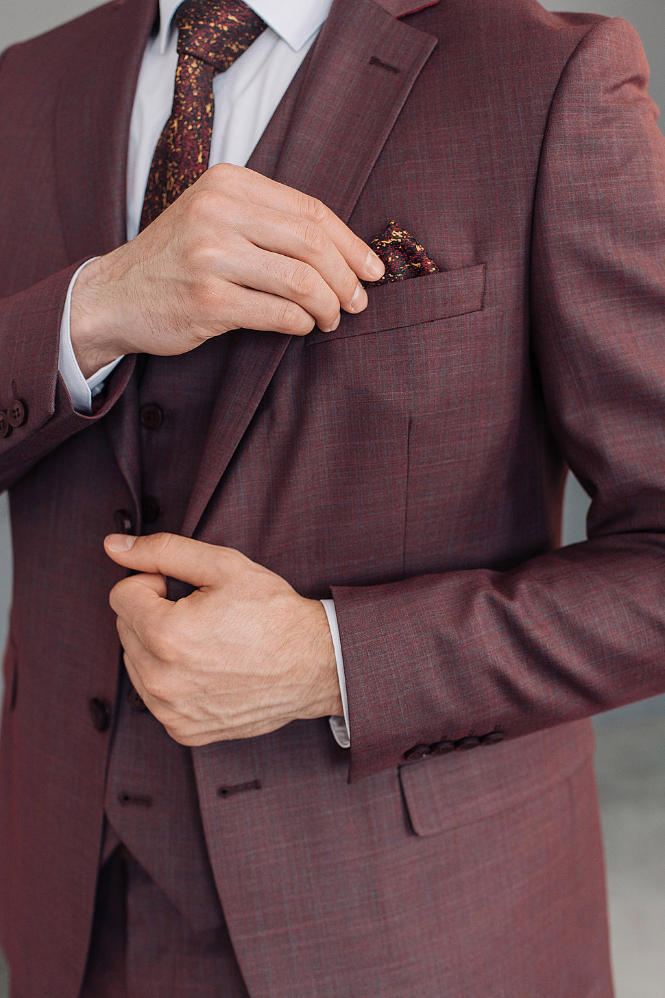 Костюм мужской тройка темно-бордового цвета фактурный