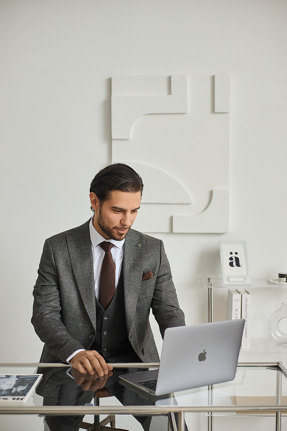 Костюм светло-коричневый двойка в клетку, повседневный и классический образ