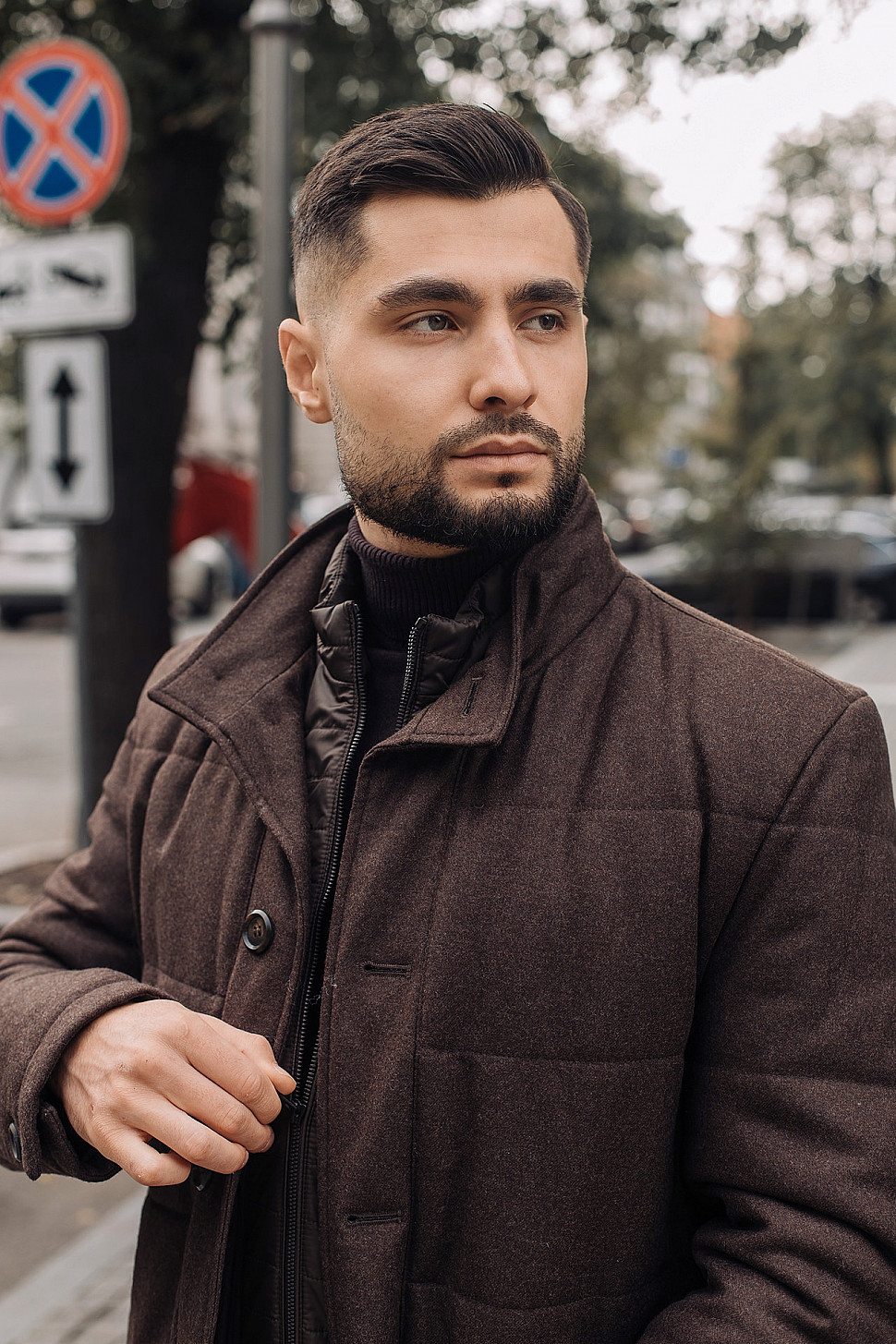 Мужская куртка темно-коричневого цвета с меховым воротником