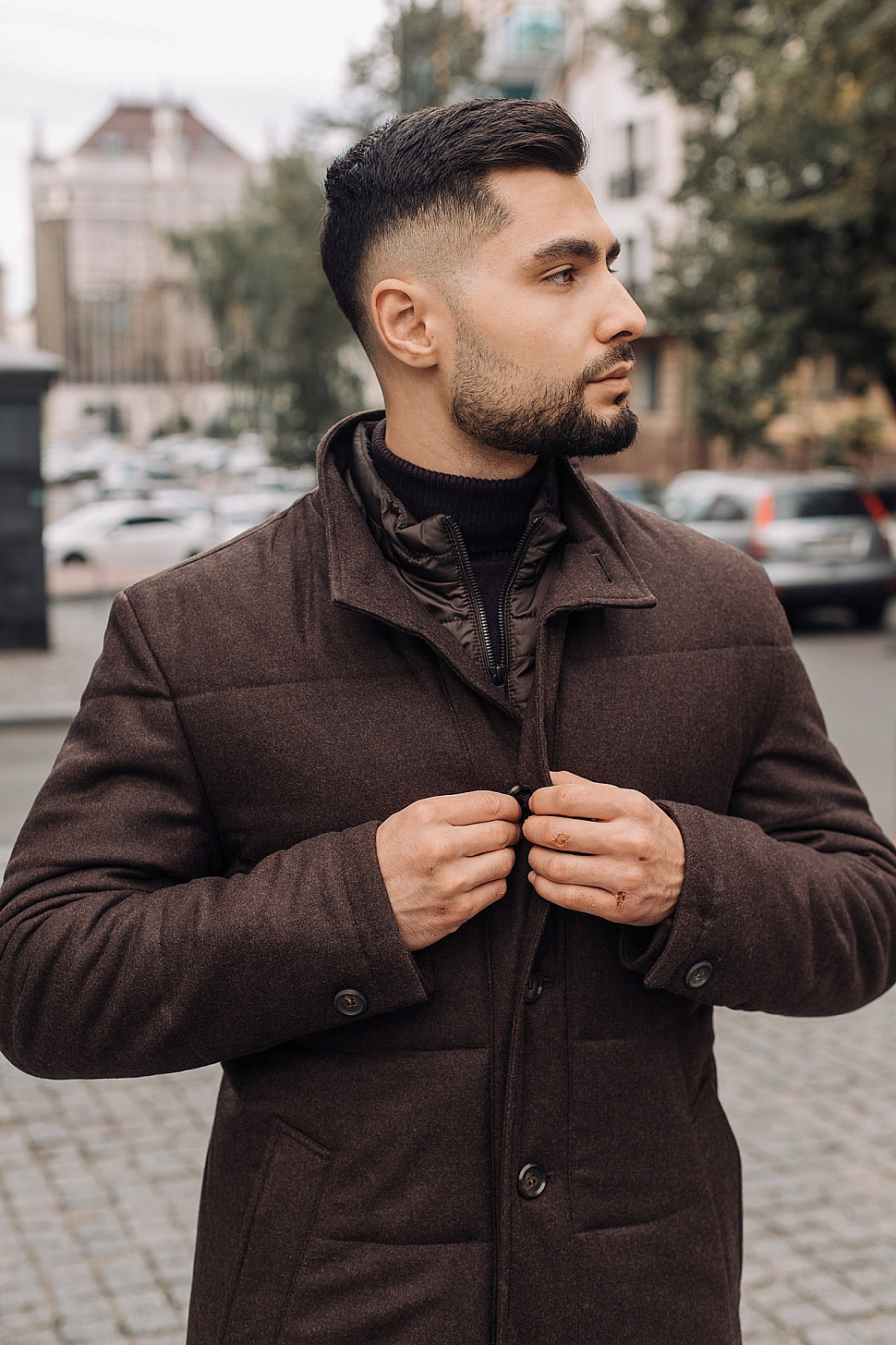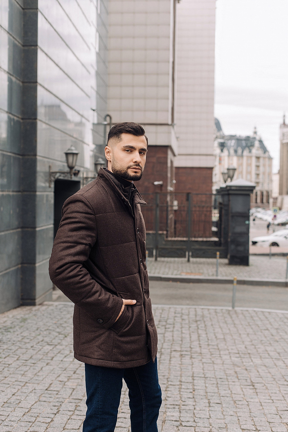 Мужское пальто коричневого цвета