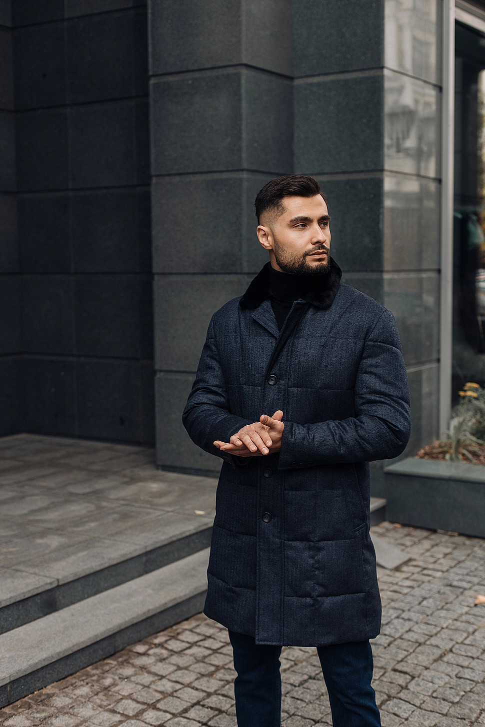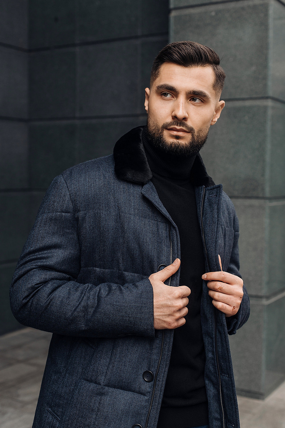 Мужское пальто черного цвета фактурное