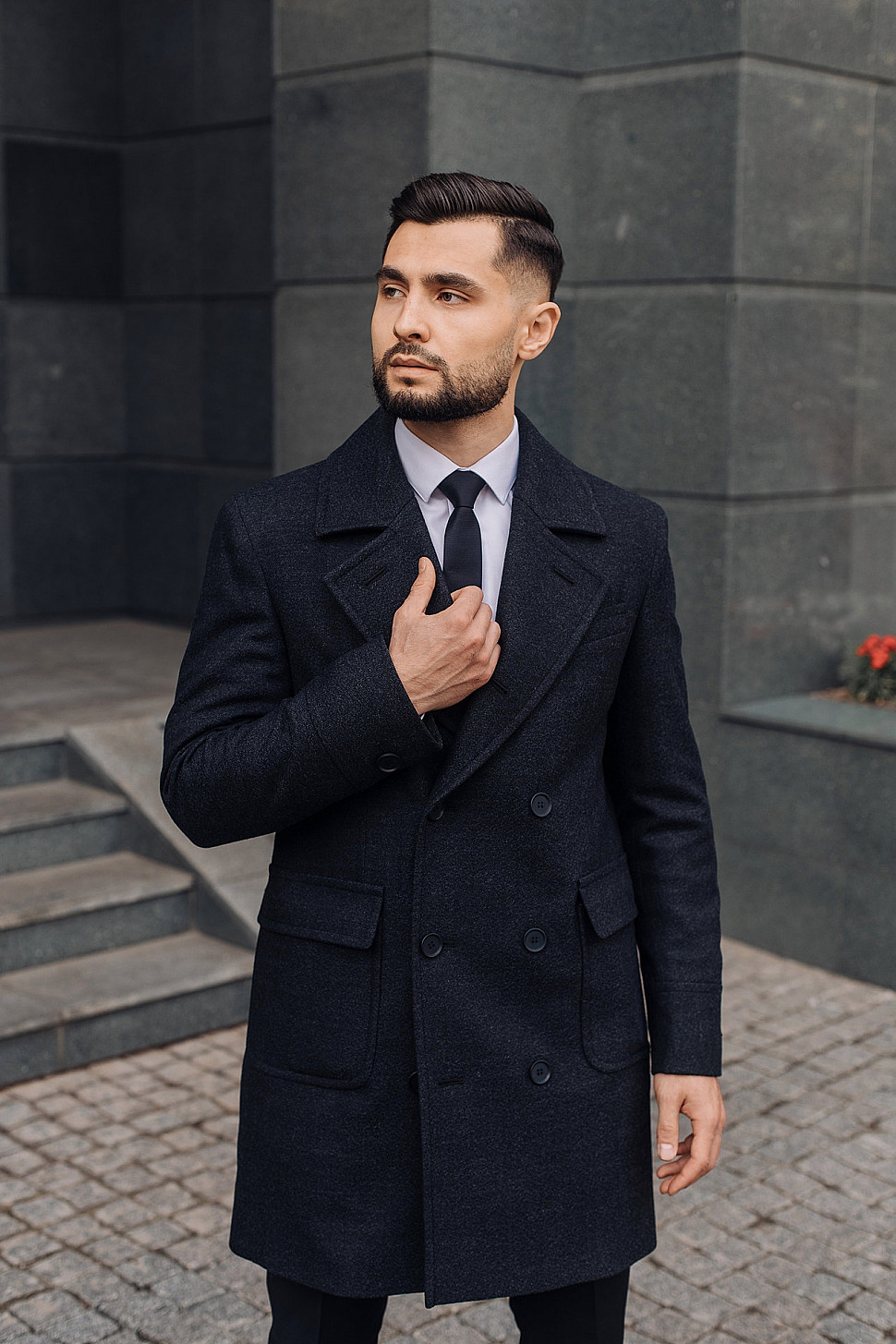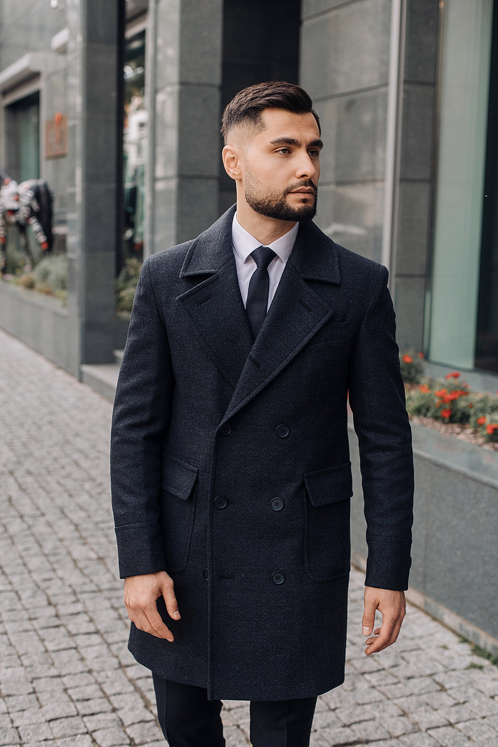 Мужской костюм двойка темно-синий двубортный с золотыми пуговицами