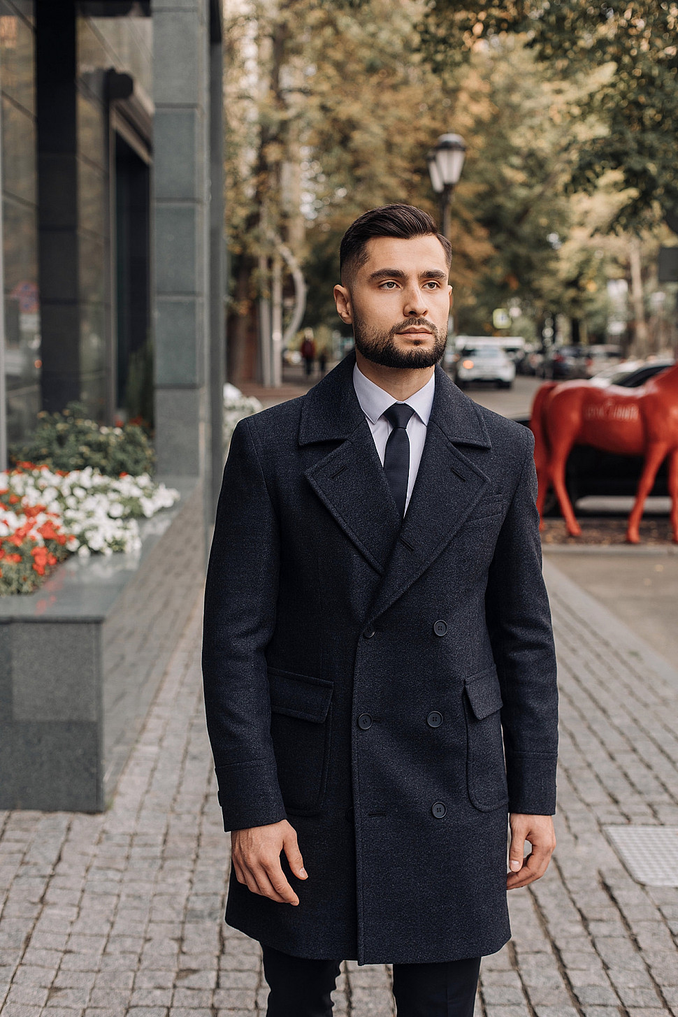 Мужской костюм двойка серый двубортный с золотыми пуговицами