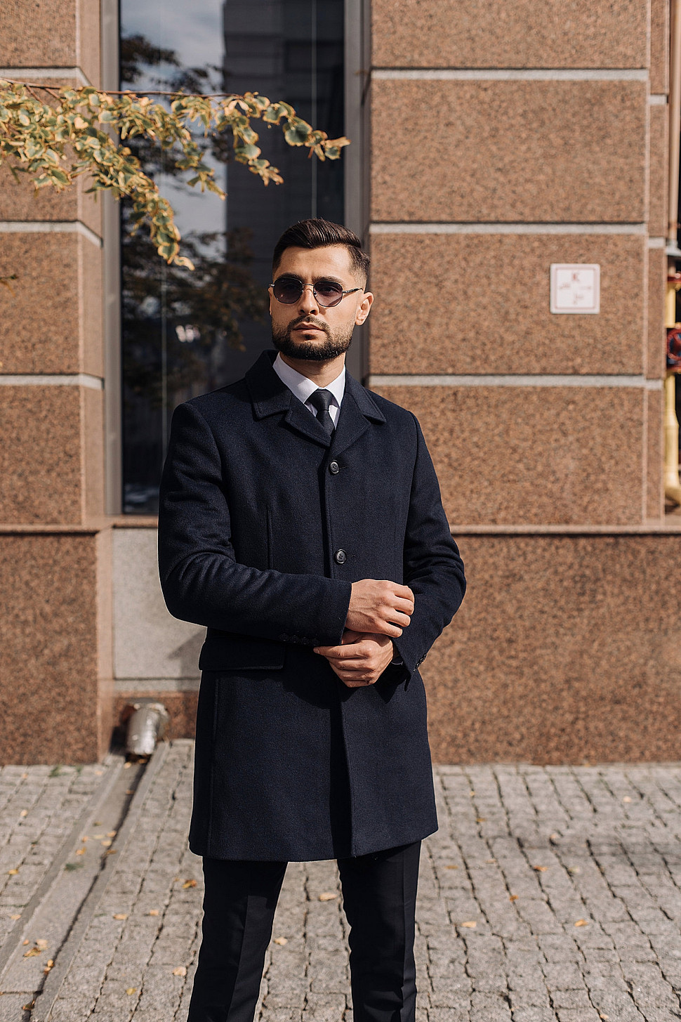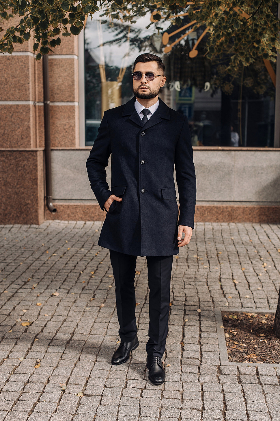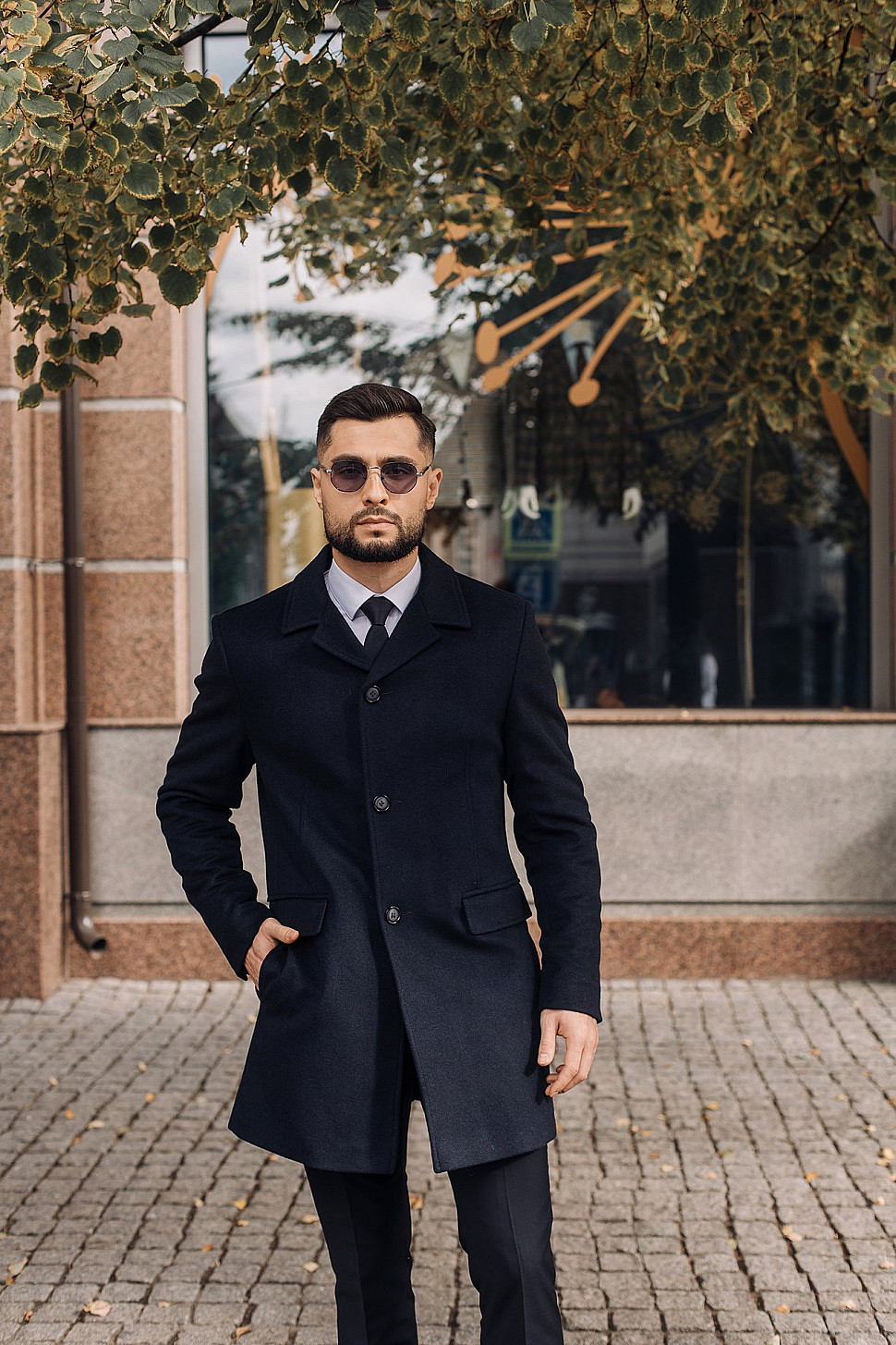 Мужской костюм двойка темно-синий двубортный с золотыми пуговицами