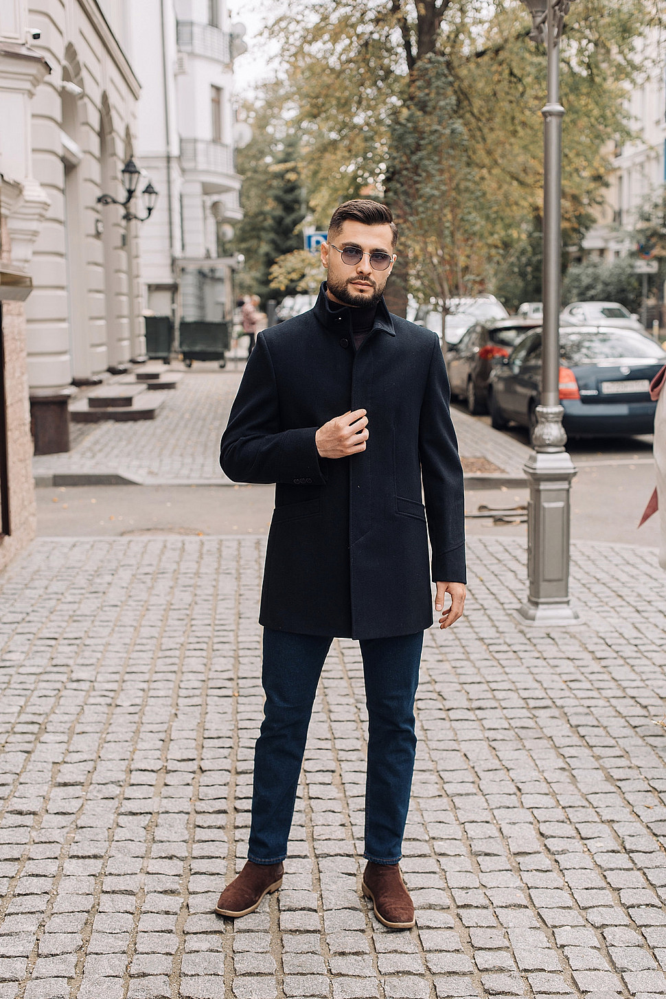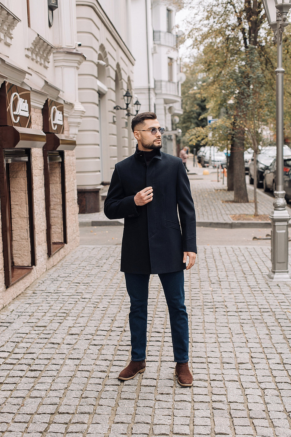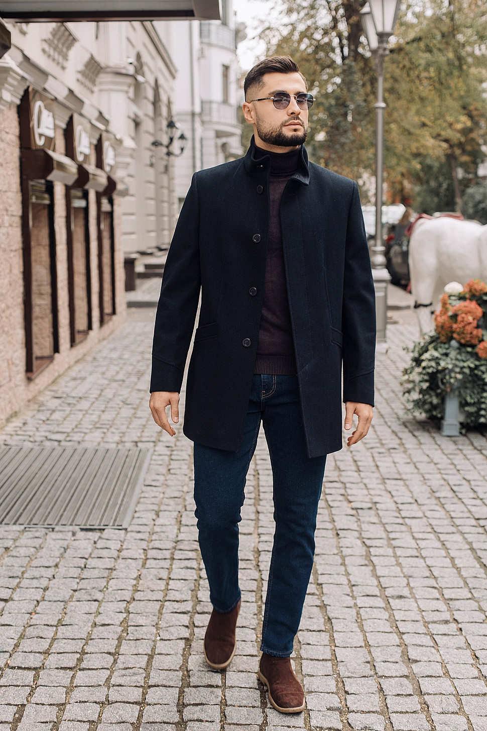 Мужская куртка темно-коричневого цвета с меховым воротником
