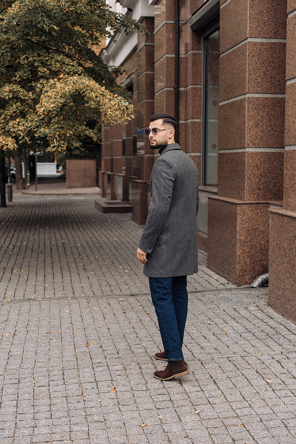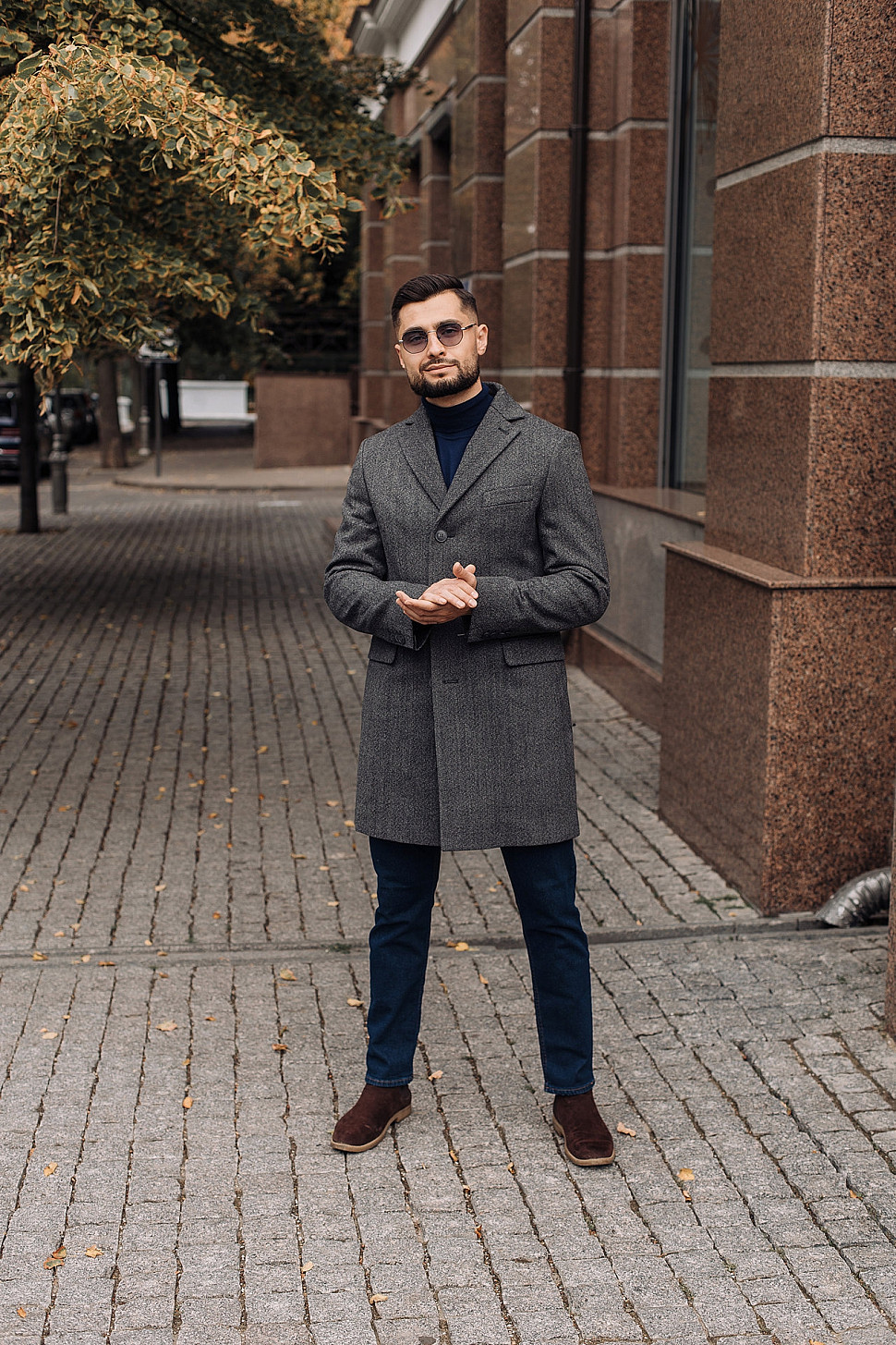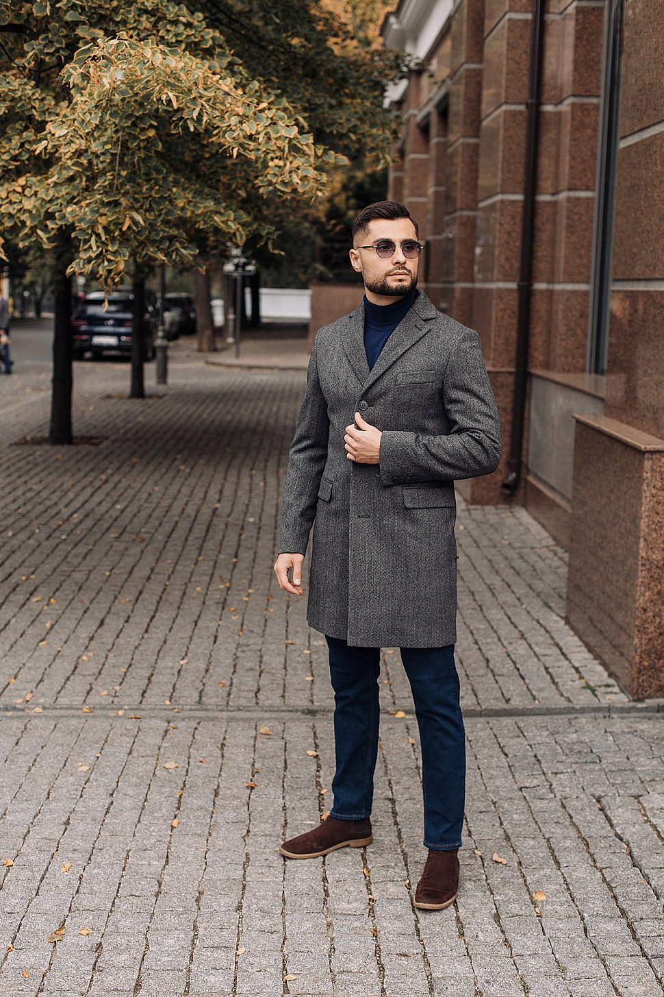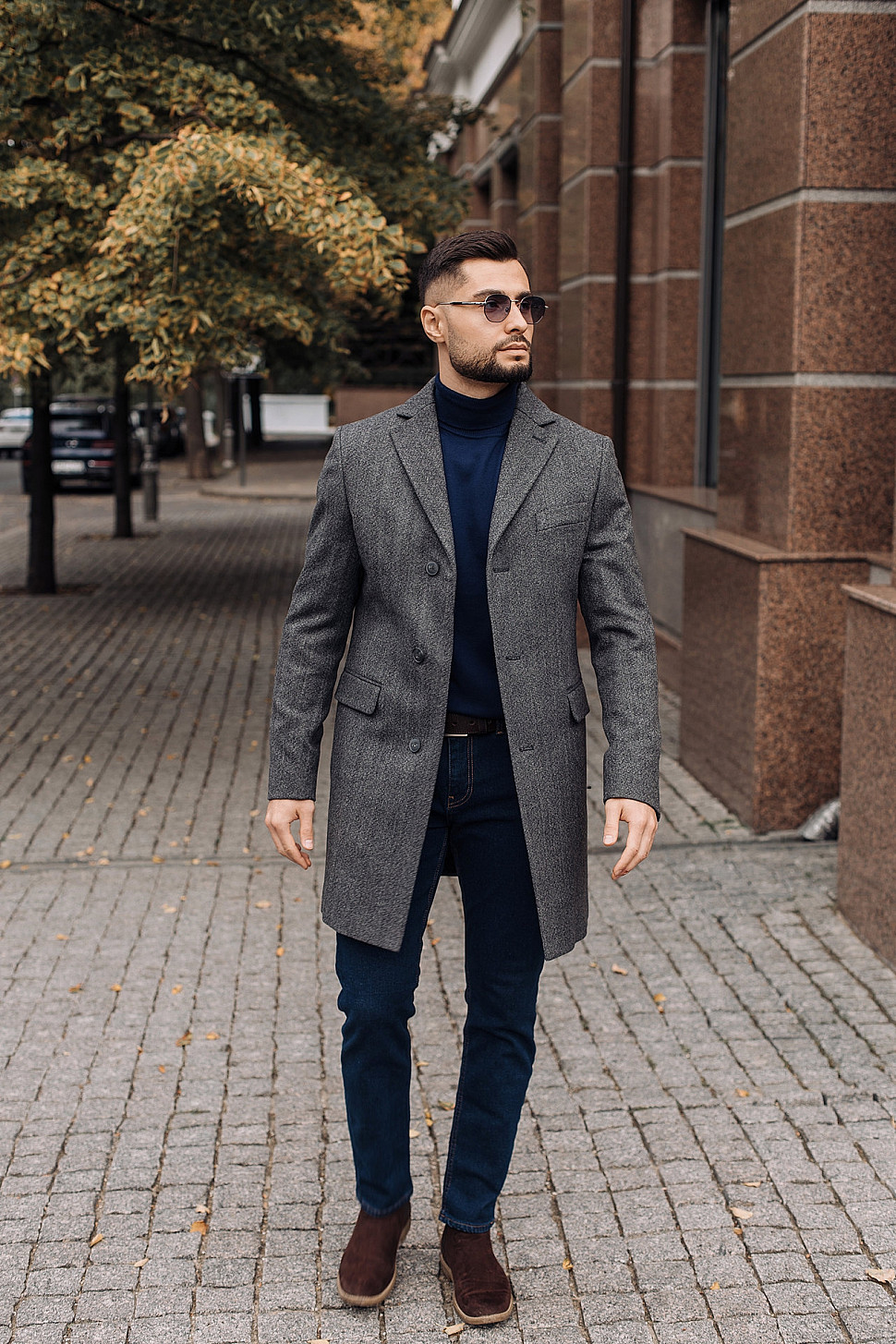 Мужское пальто коричневого цвета