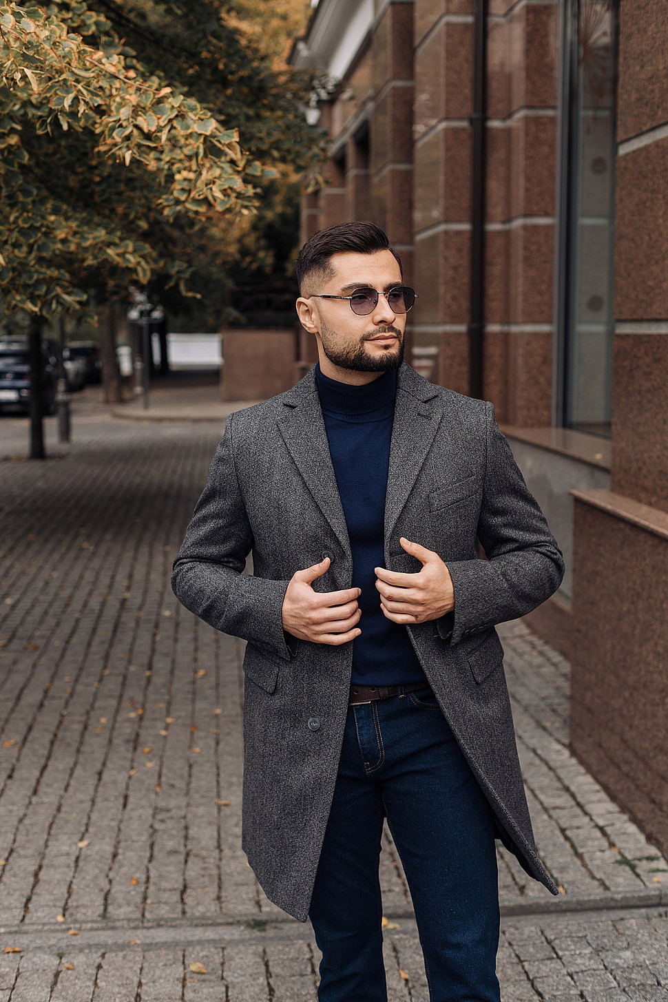 Мужское пальто серого цвета фактурное