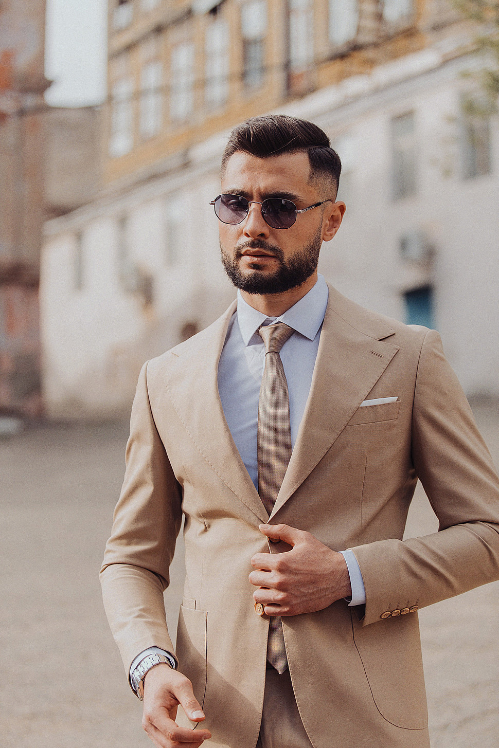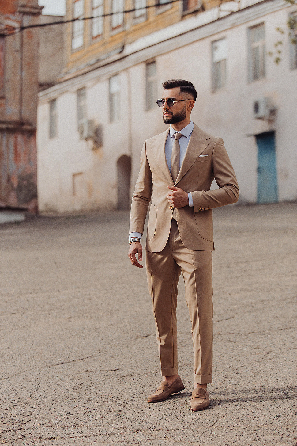 Костюм двойка бежевого цвета, повседневный и классический образ