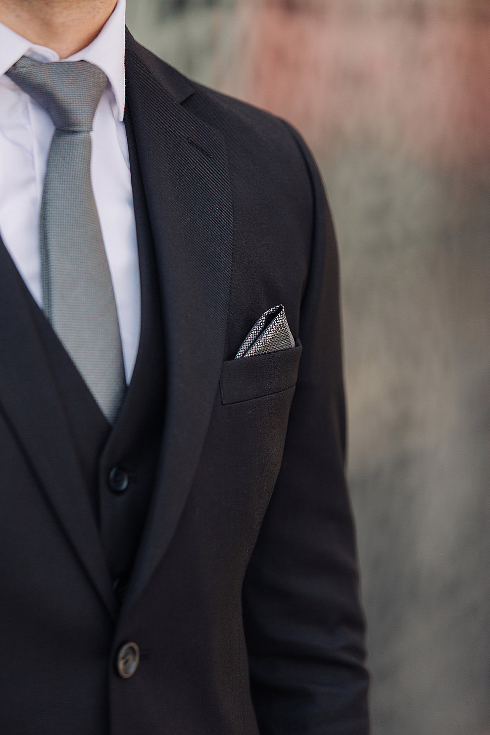 Мужской костюм двойка серого цвета в мелкую клетку с накладными карманами