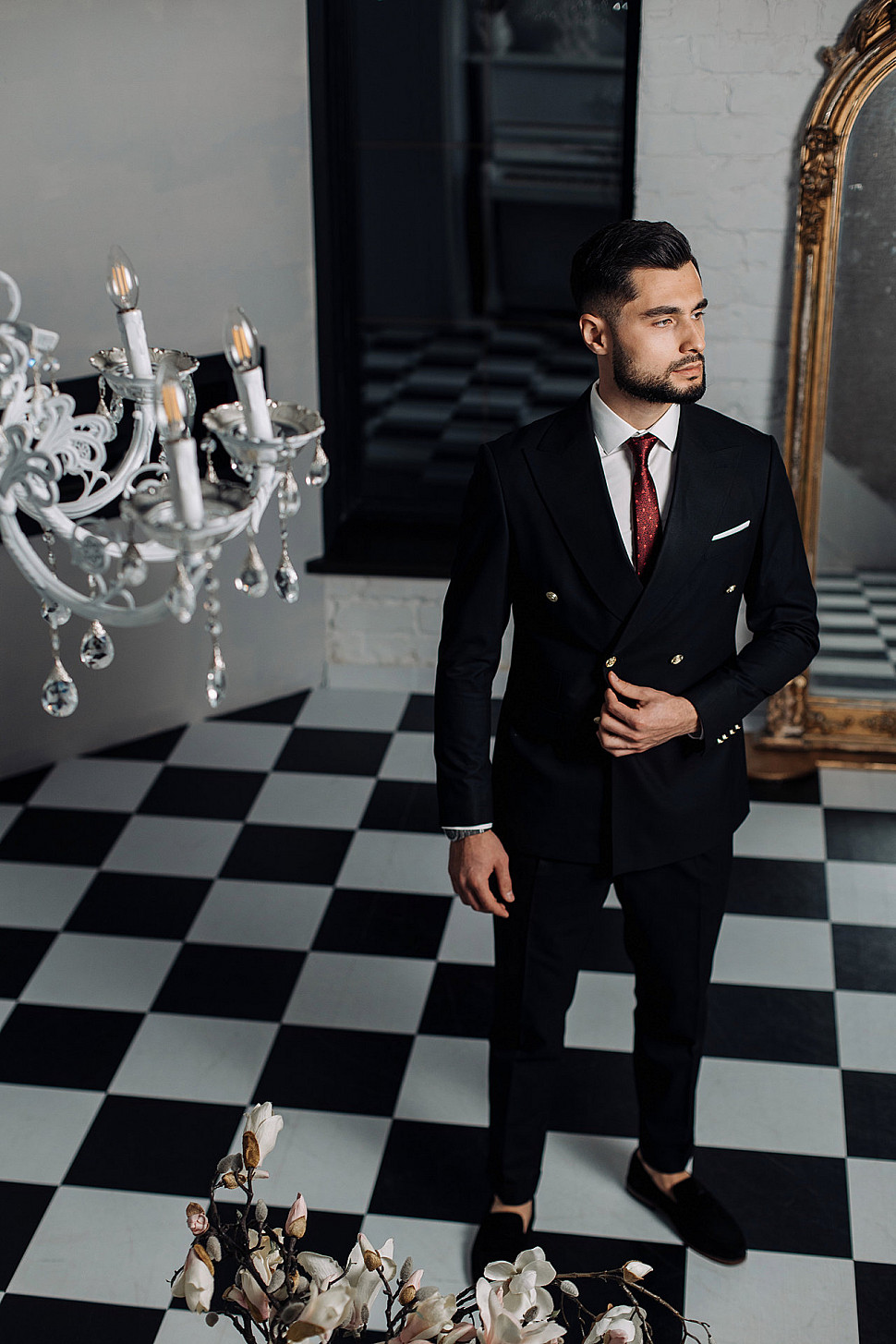 Костюм мужской двойка черного цвета в полоску круизного стиля