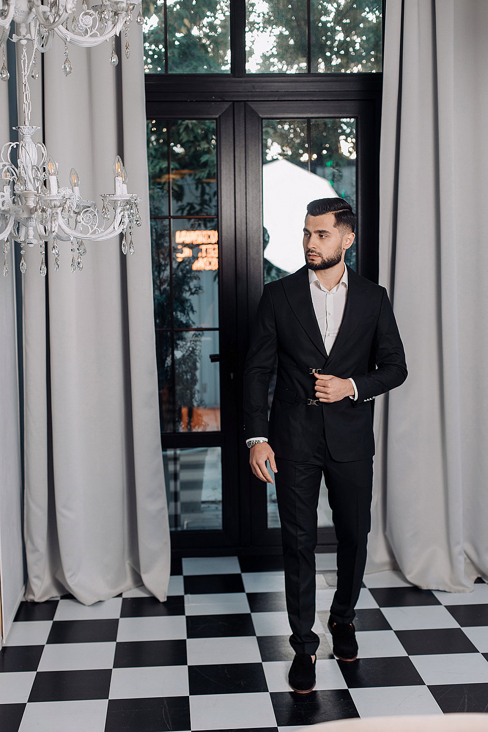 Костюм мужской двойка черного цвета в полоску круизного стиля