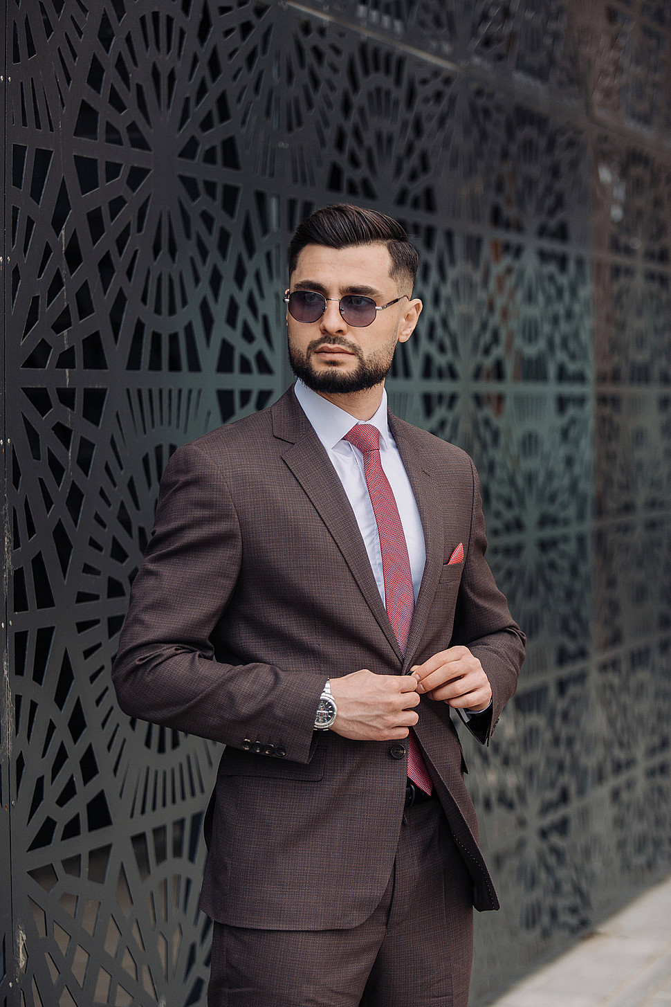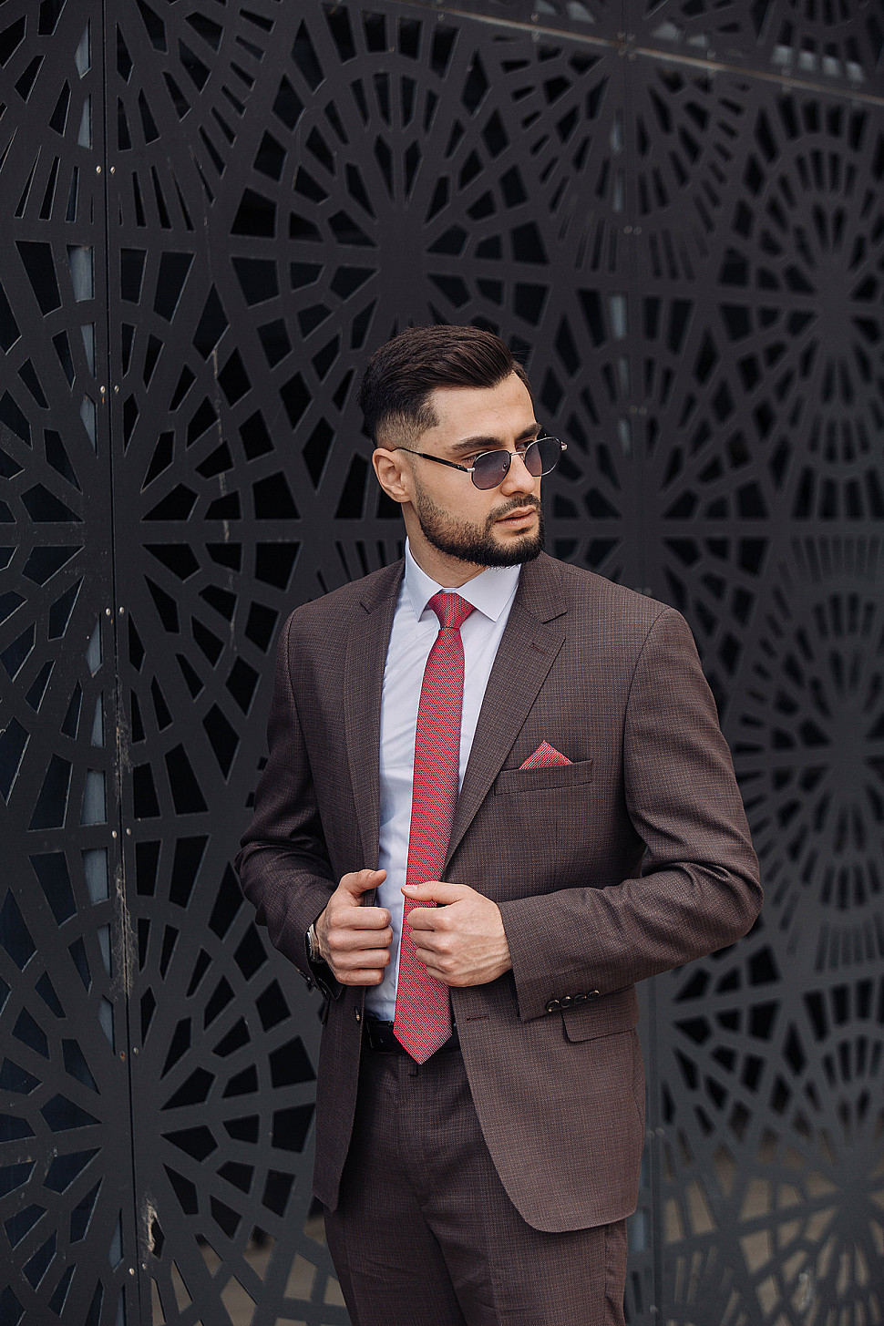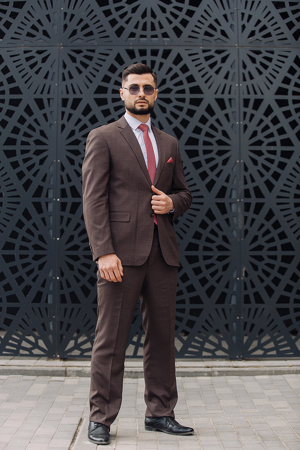 Костюм мужской тройка темно-бордового цвета фактурный