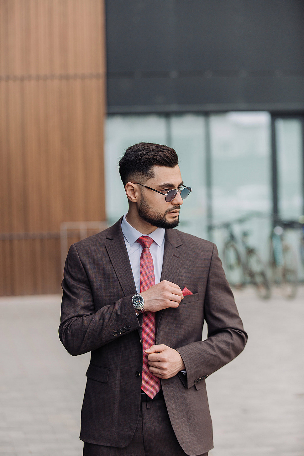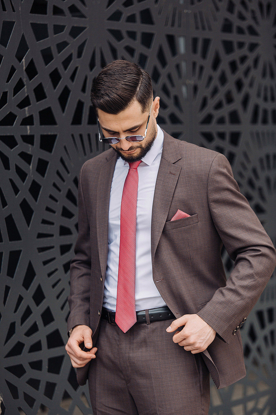 Мужской костюм Коричневого цвета в полоску со змеей