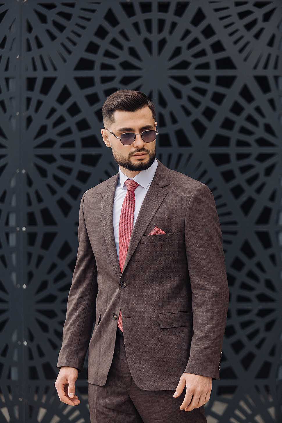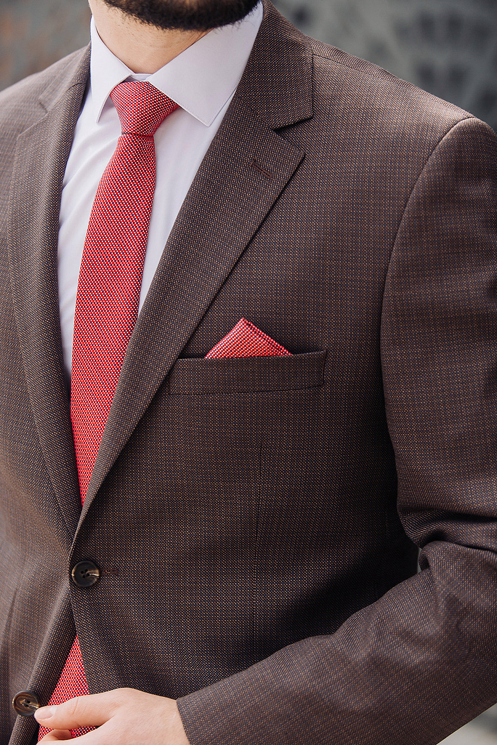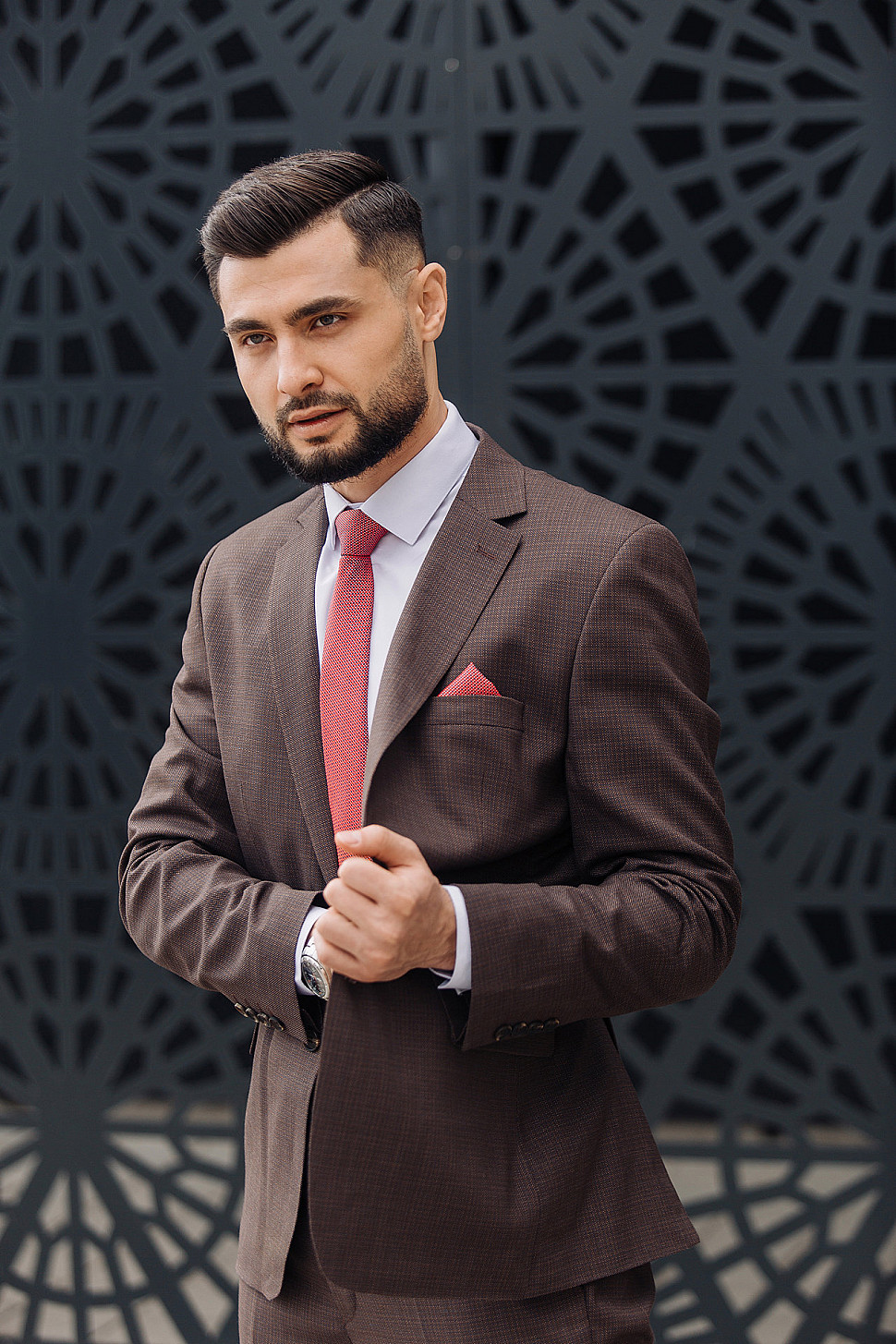 Мужской костюм тройка коричневого цвета текстурный