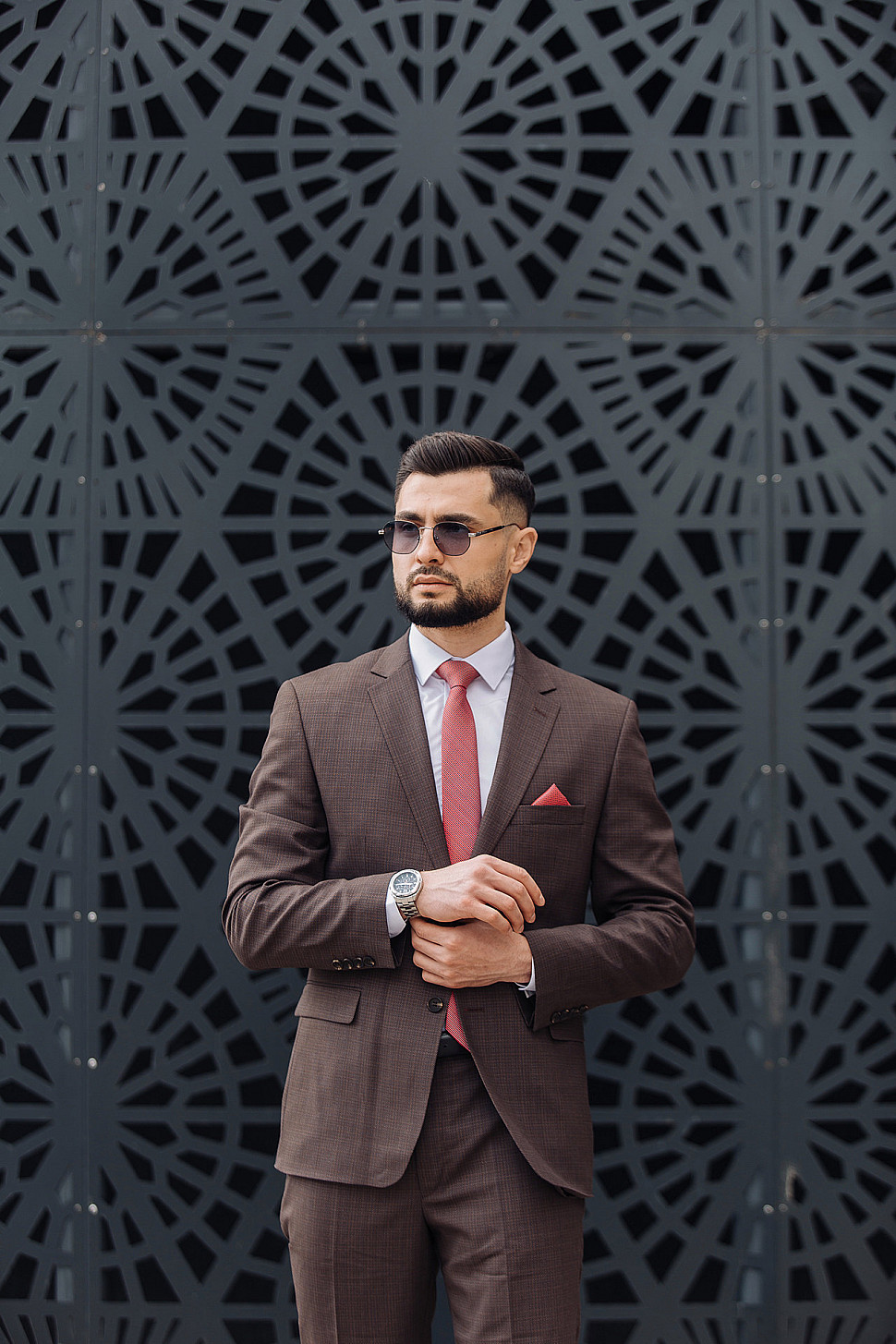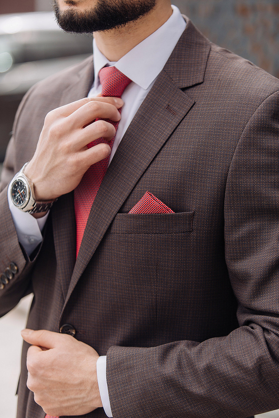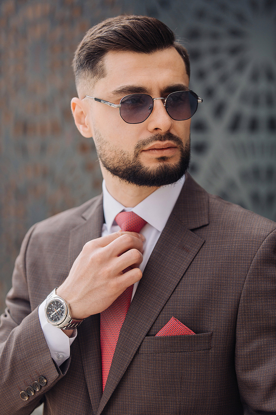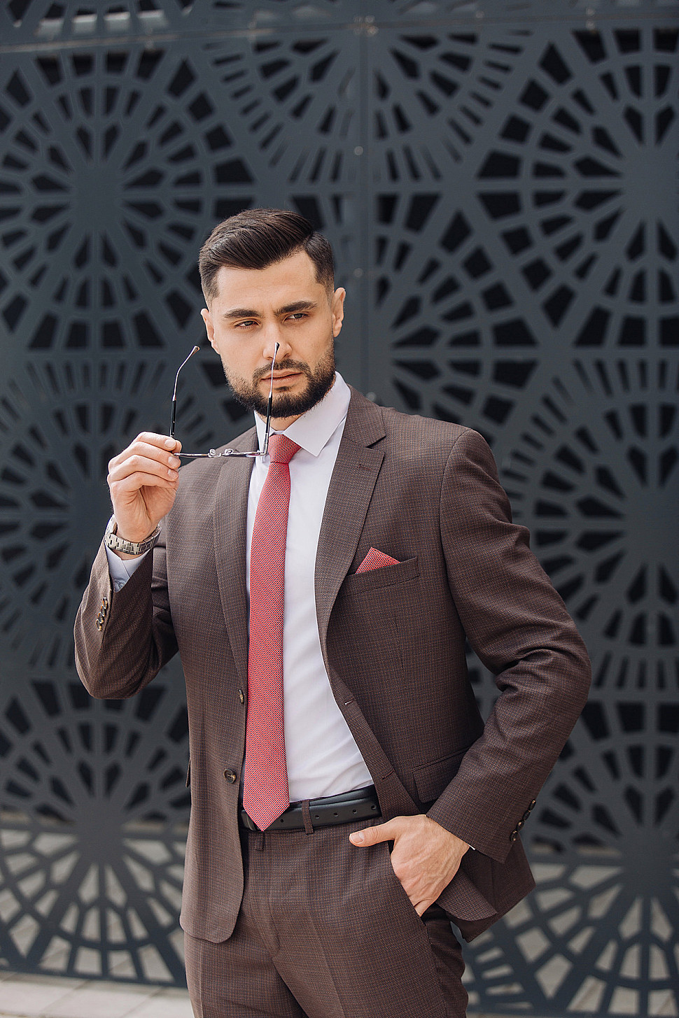 Мужской костюм тройка коричневого цвета текстурный