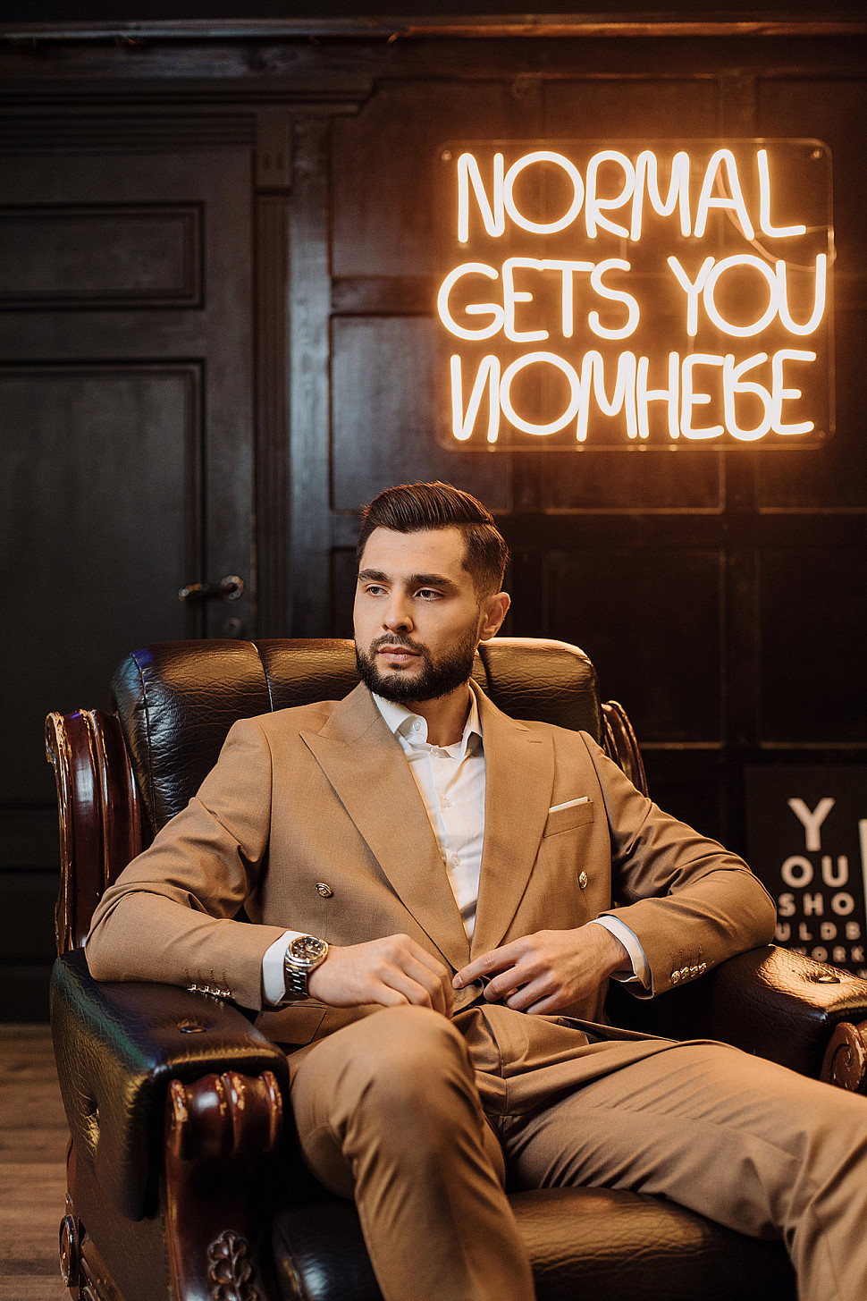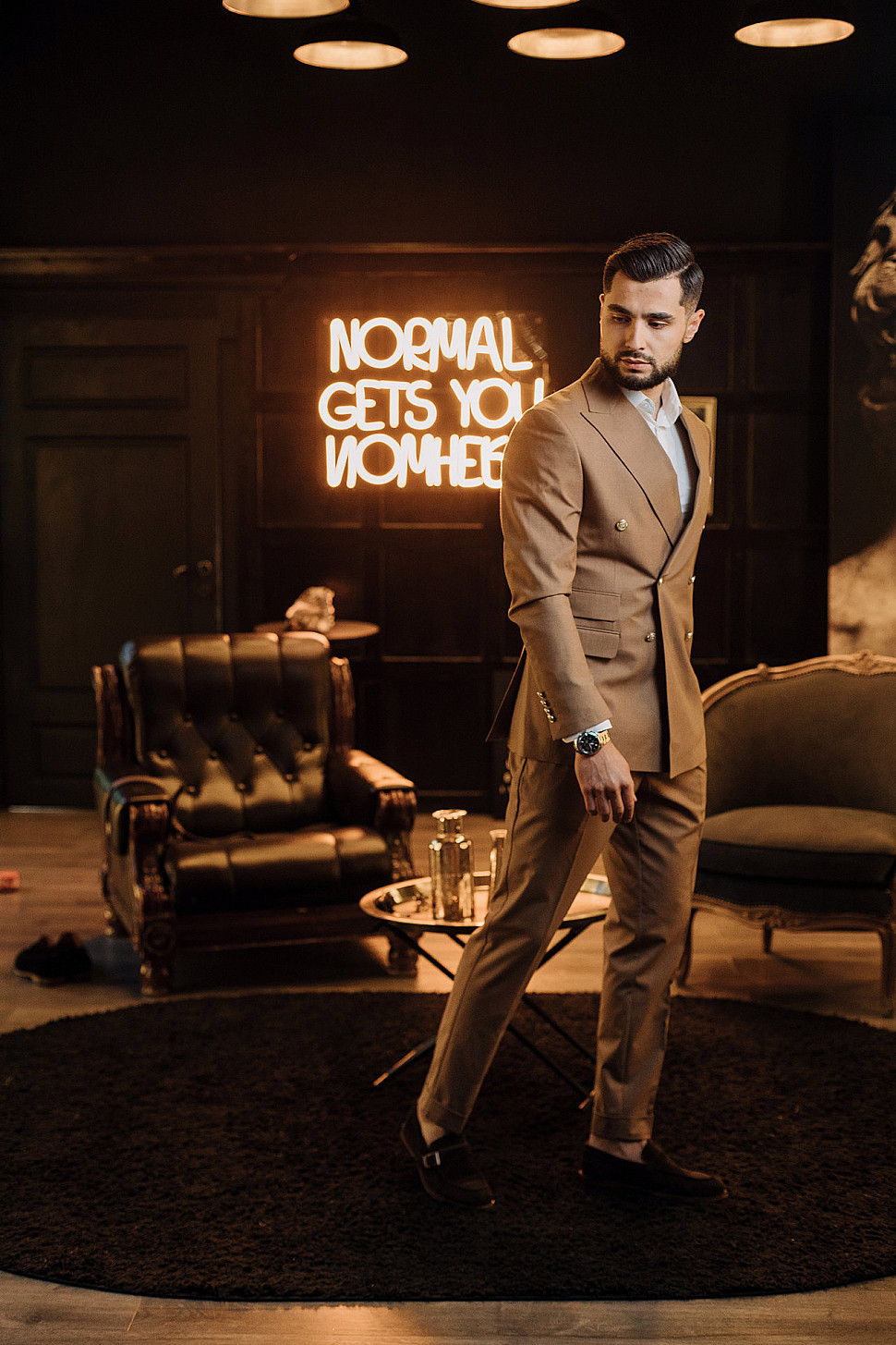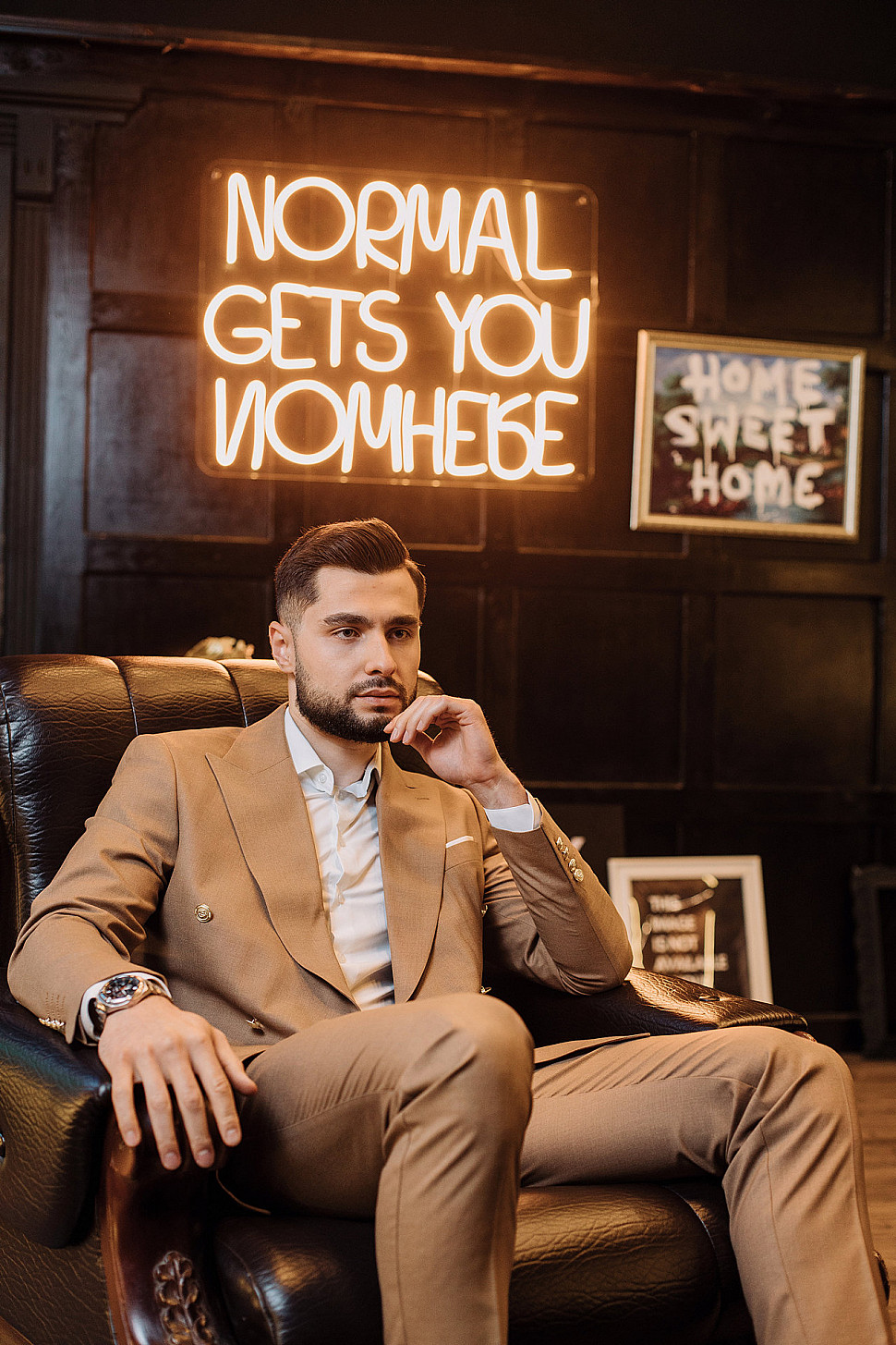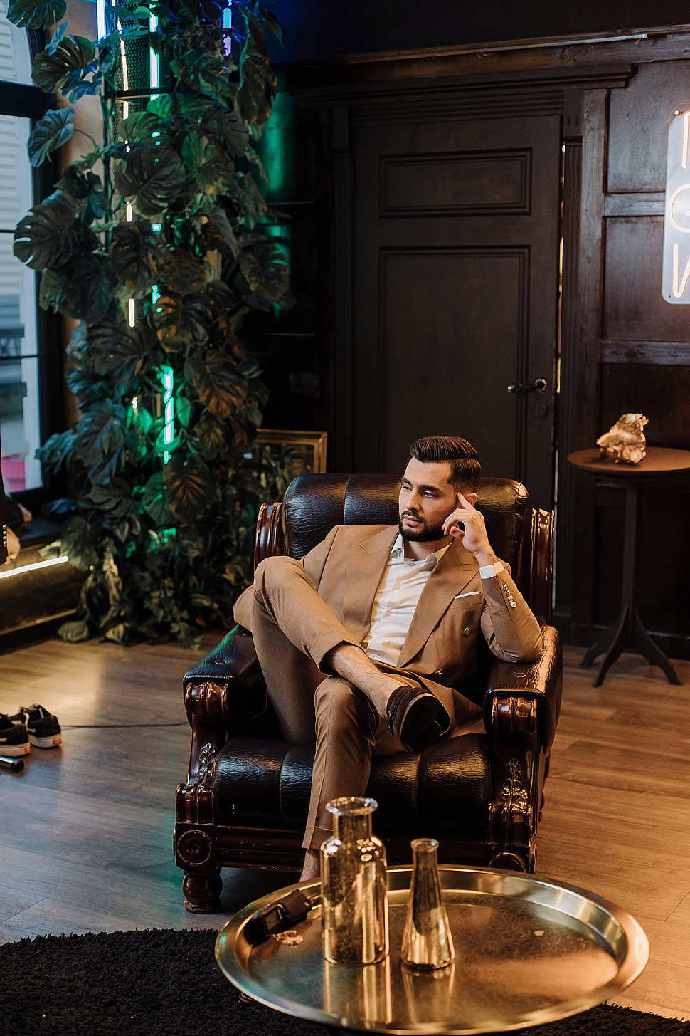 Мужской костюм Коричневого цвета в полоску со змеей