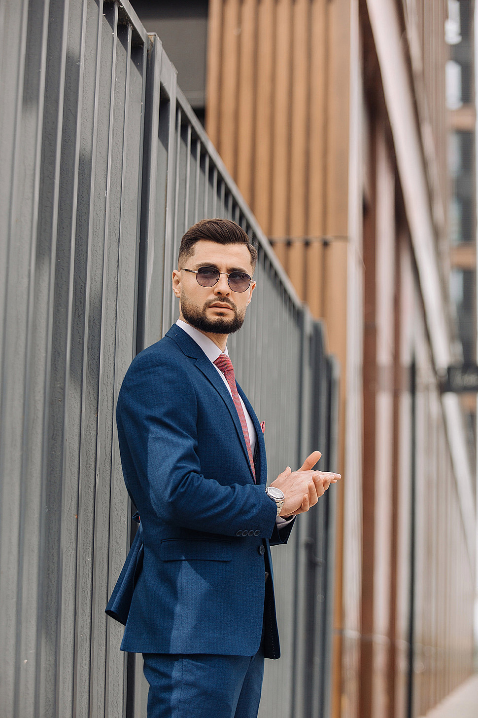 Мужской костюм тройка темно-фиолетовый, классический образ