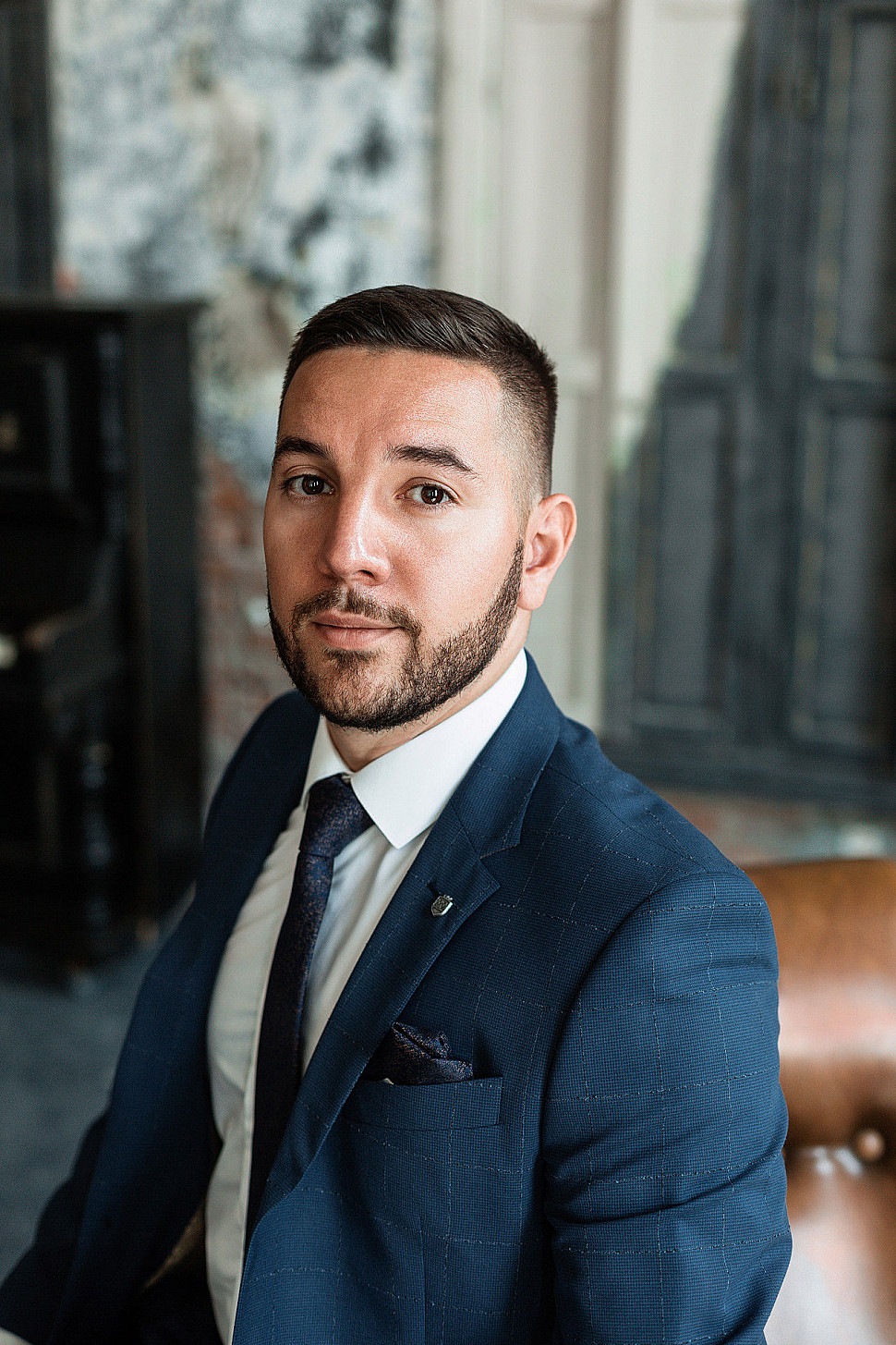 Мужской костюм тройка темно-фиолетовый, классический образ