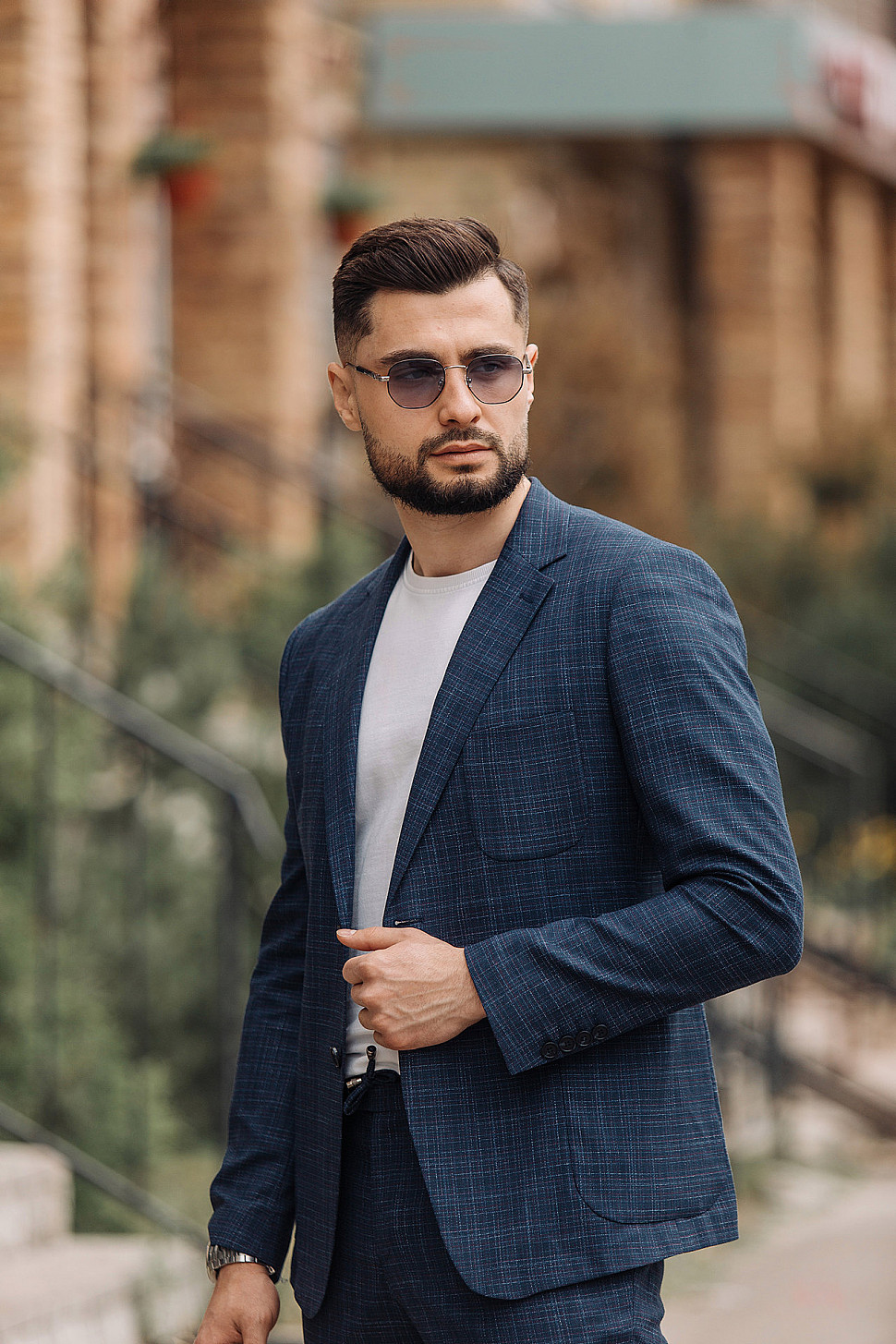 Костюм светло-коричневый двойка в клетку, повседневный и классический образ