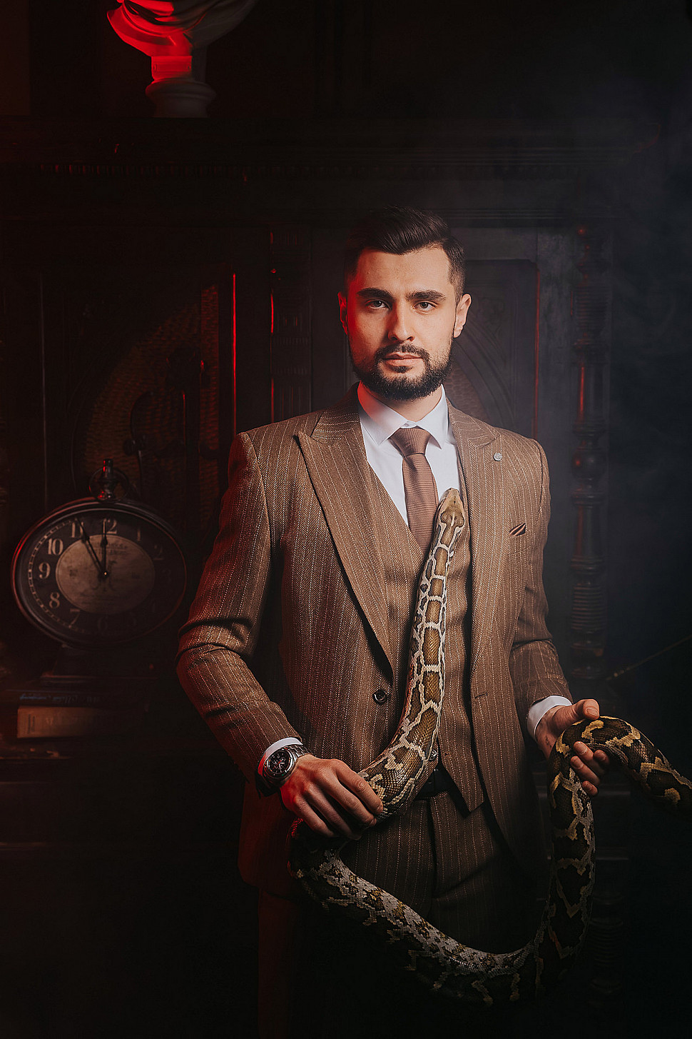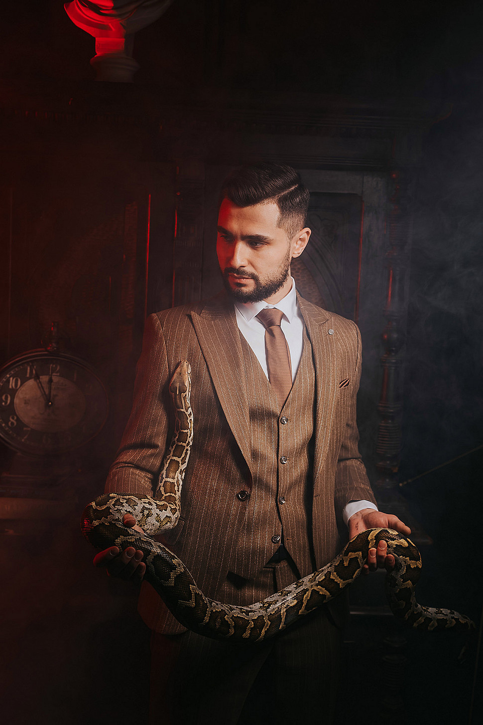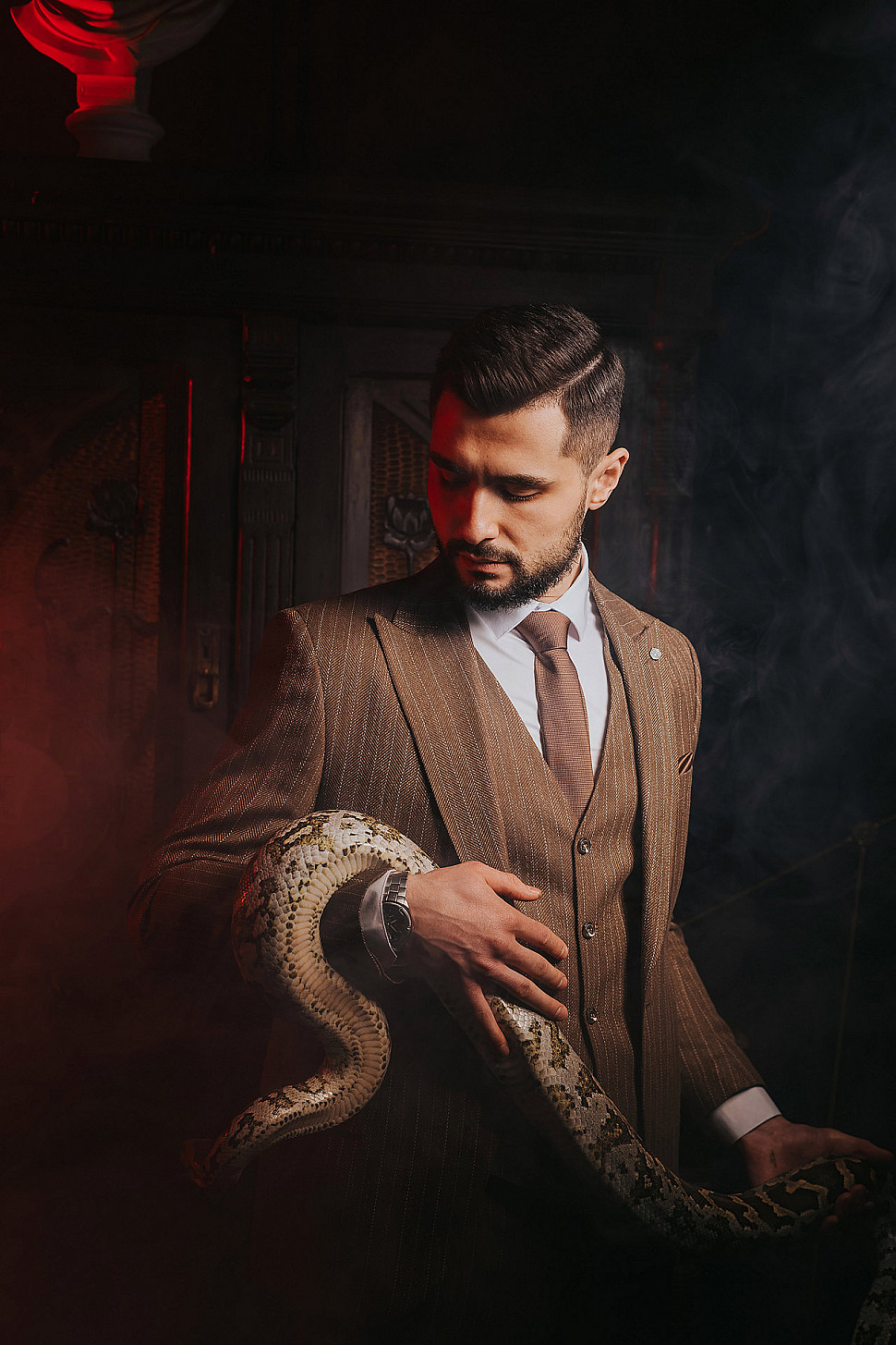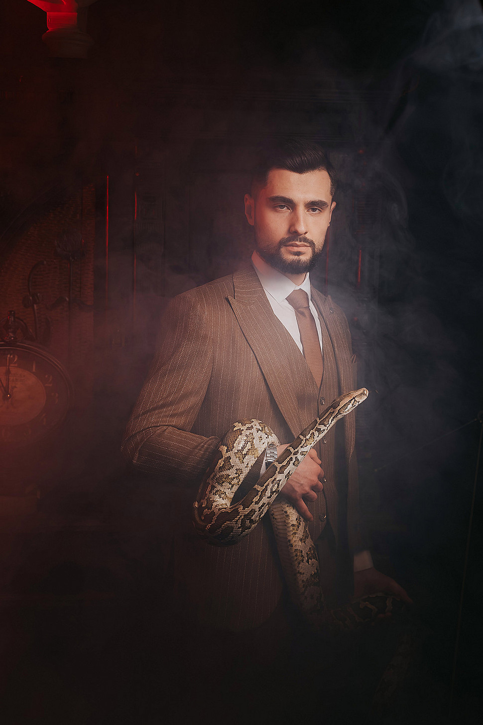 Мужской костюм Коричневого цвета в полоску со змеей