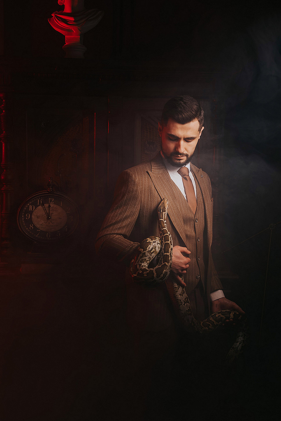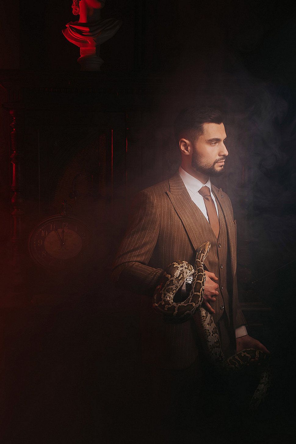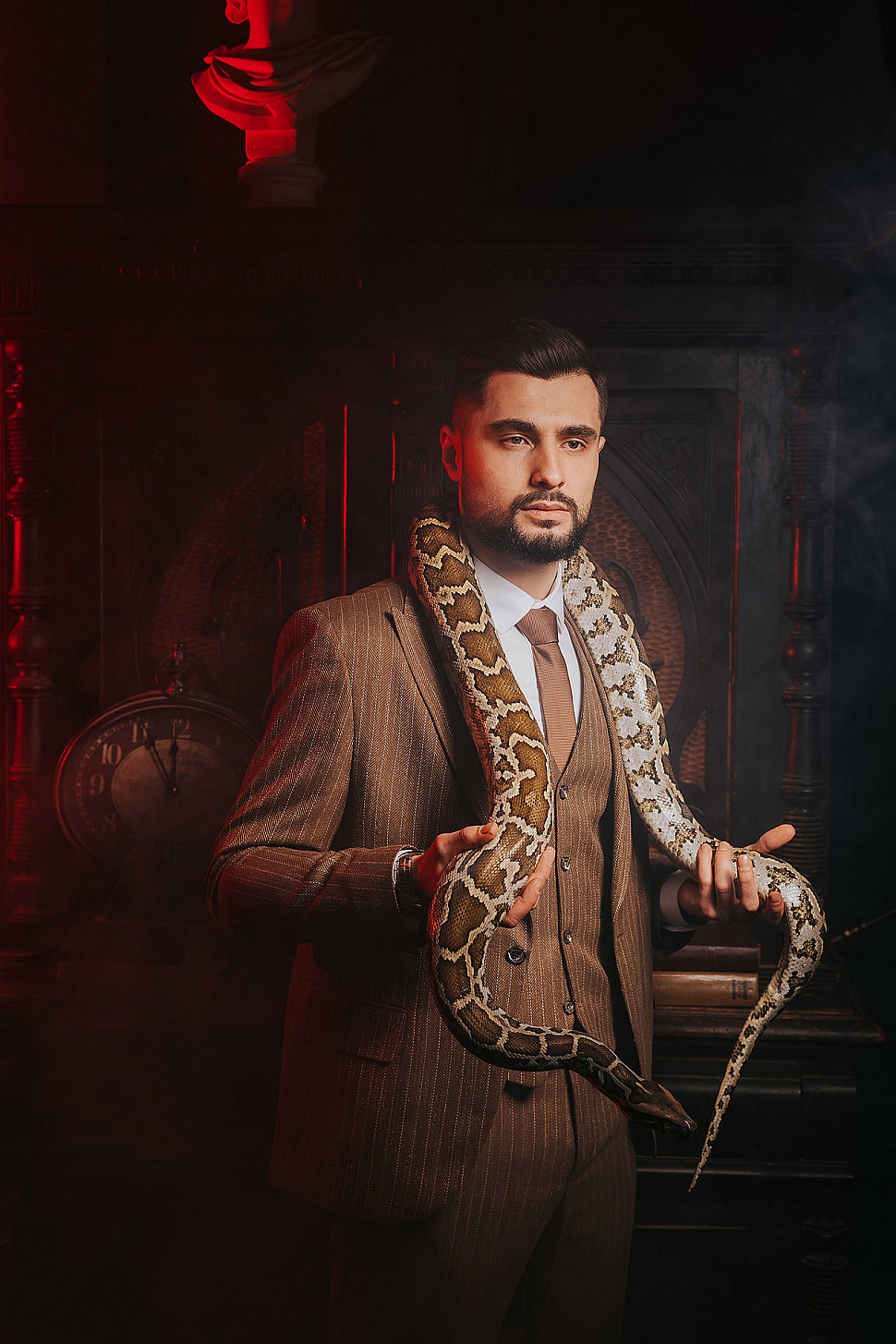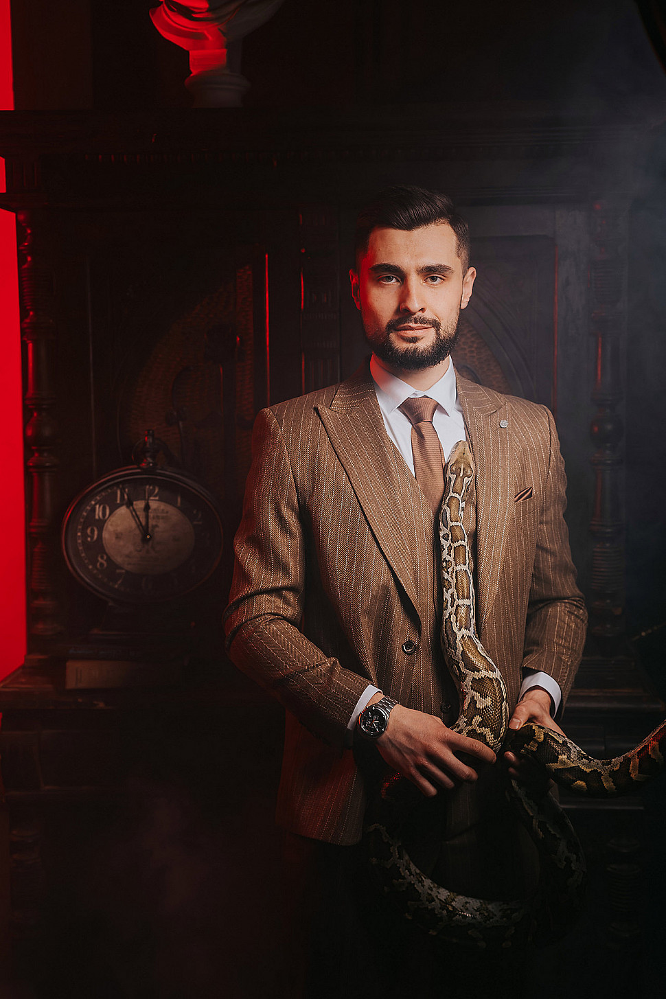 Мужской костюм Коричневого цвета в полоску со змеей