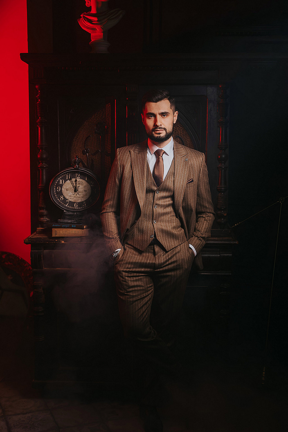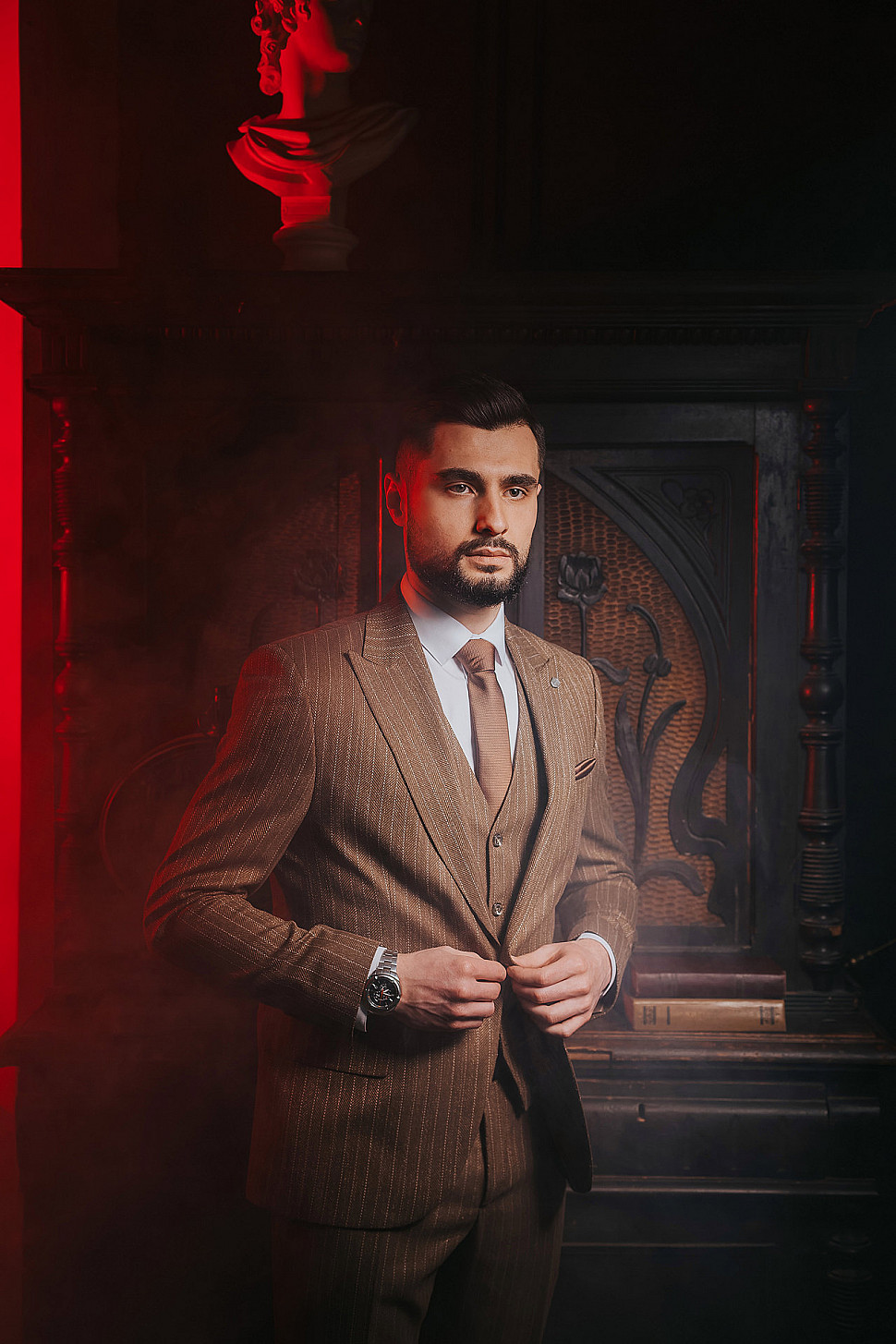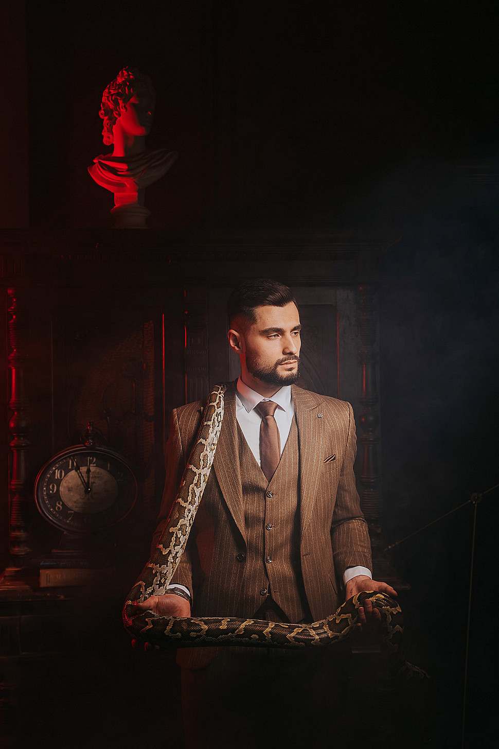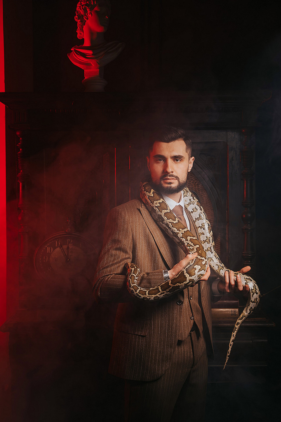 Мужской костюм Коричневого цвета в полоску со змеей
