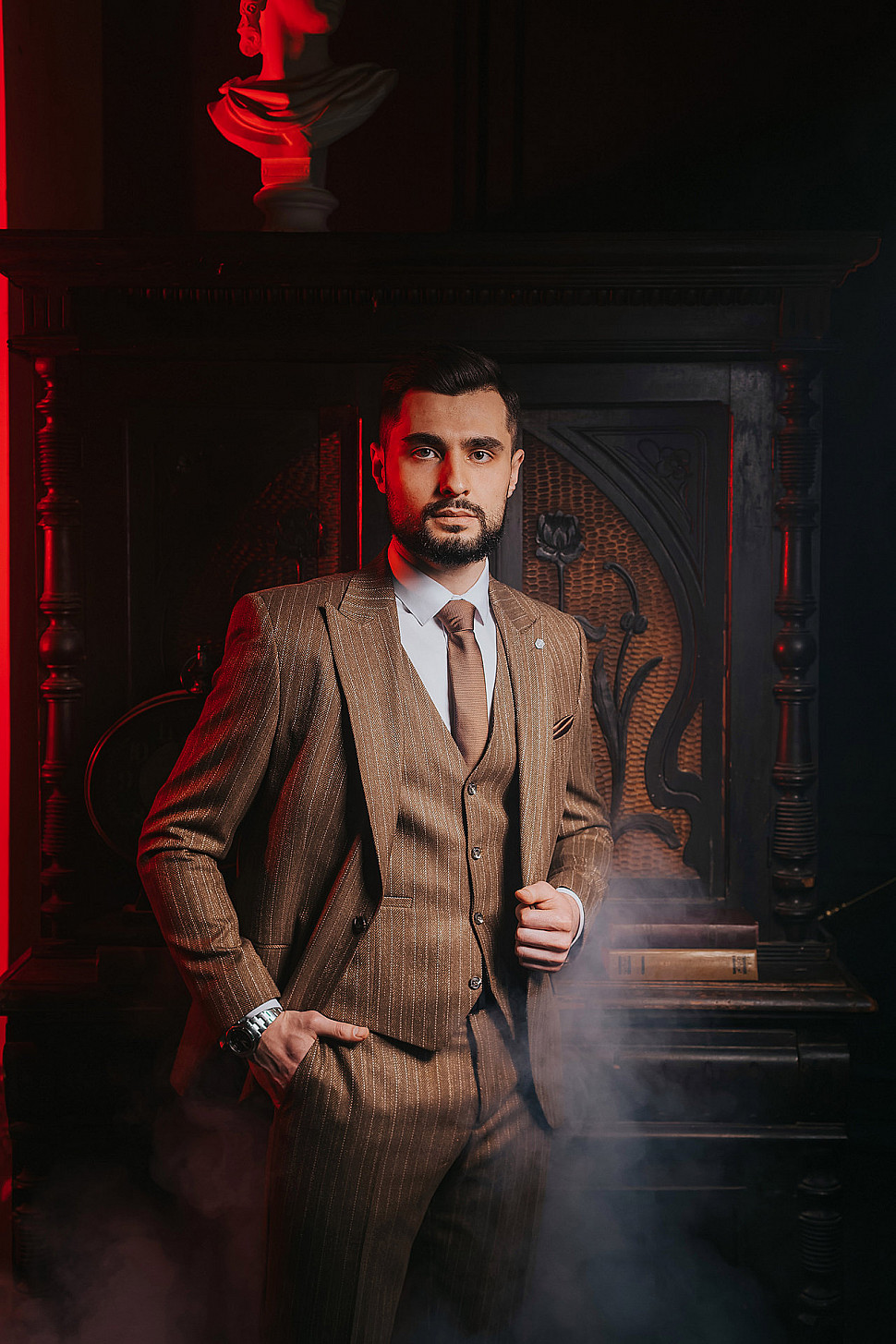 Мужской костюм тройка коричневого цвета текстурный