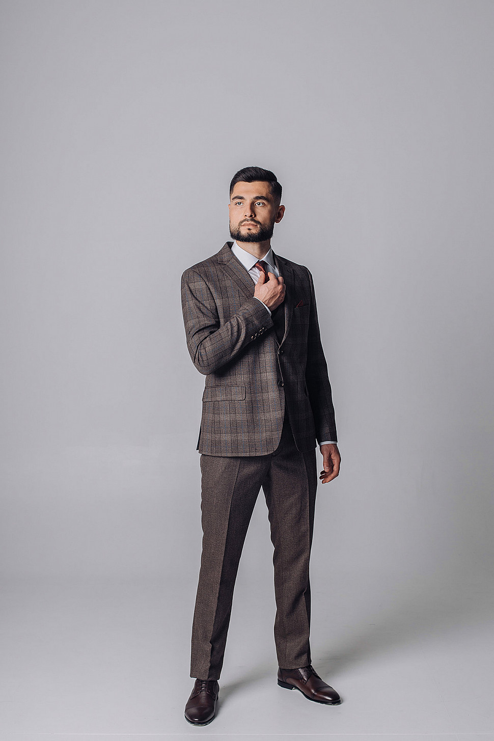 Мужской костюм двойка коричневого цвета в мелкую клетку
