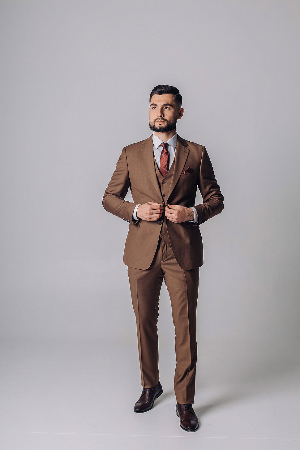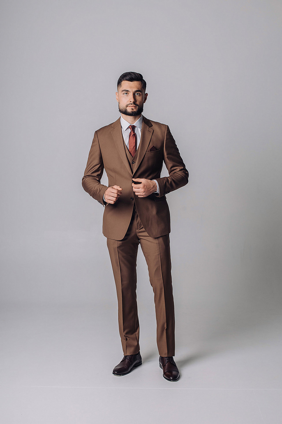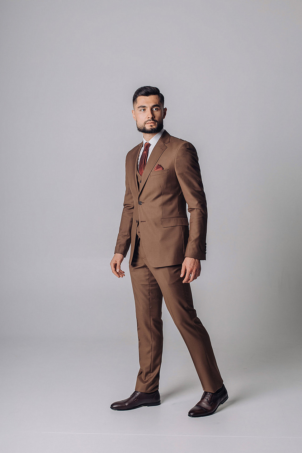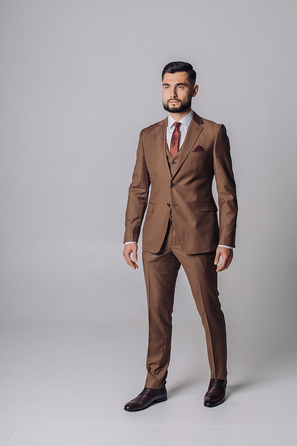 Мужской костюм тройка однотонного коричневого цвета
