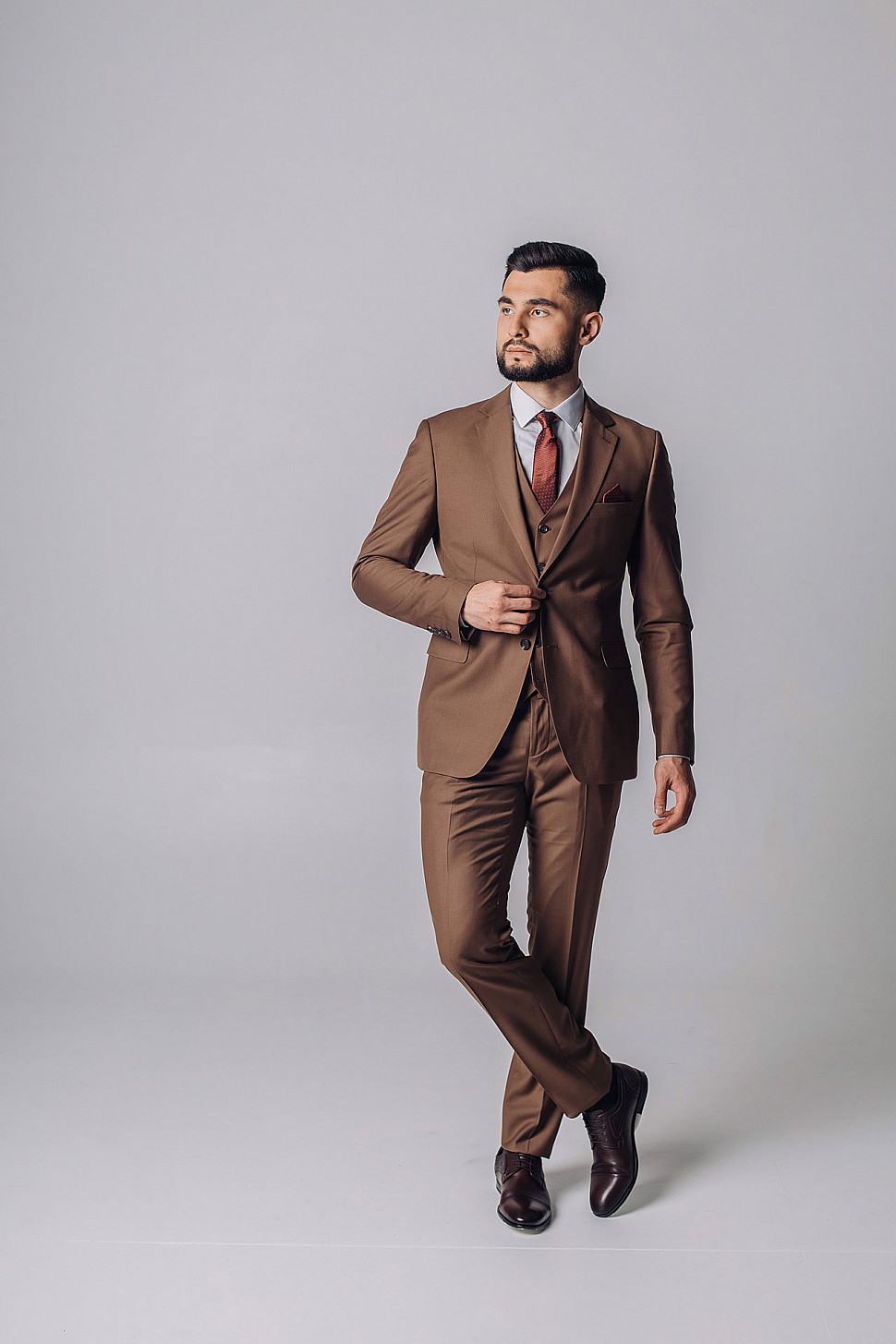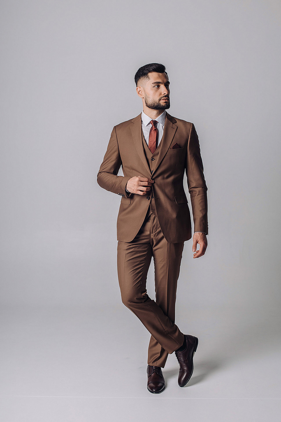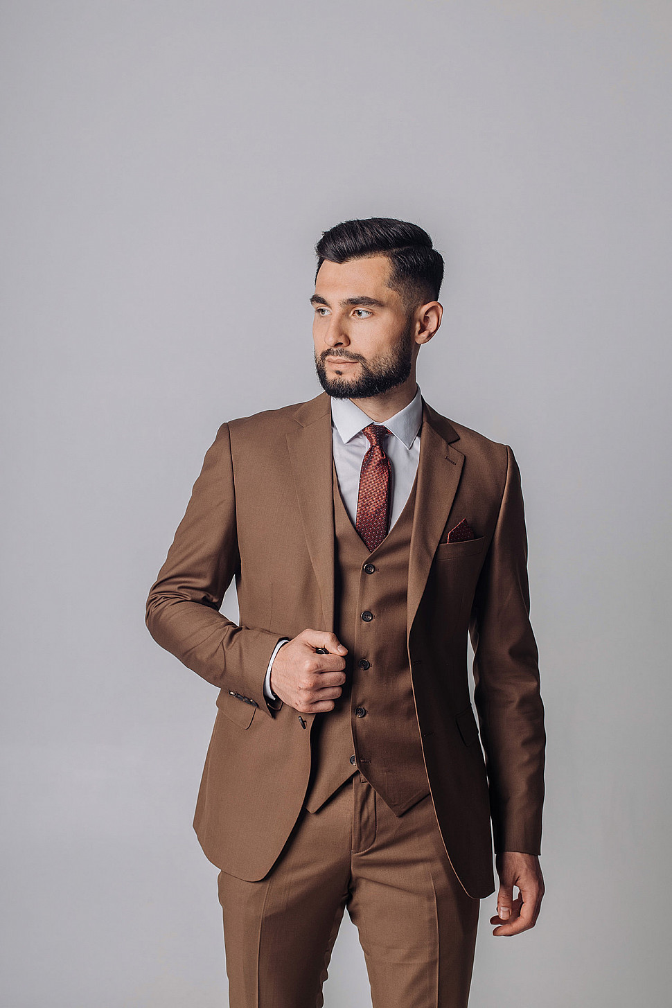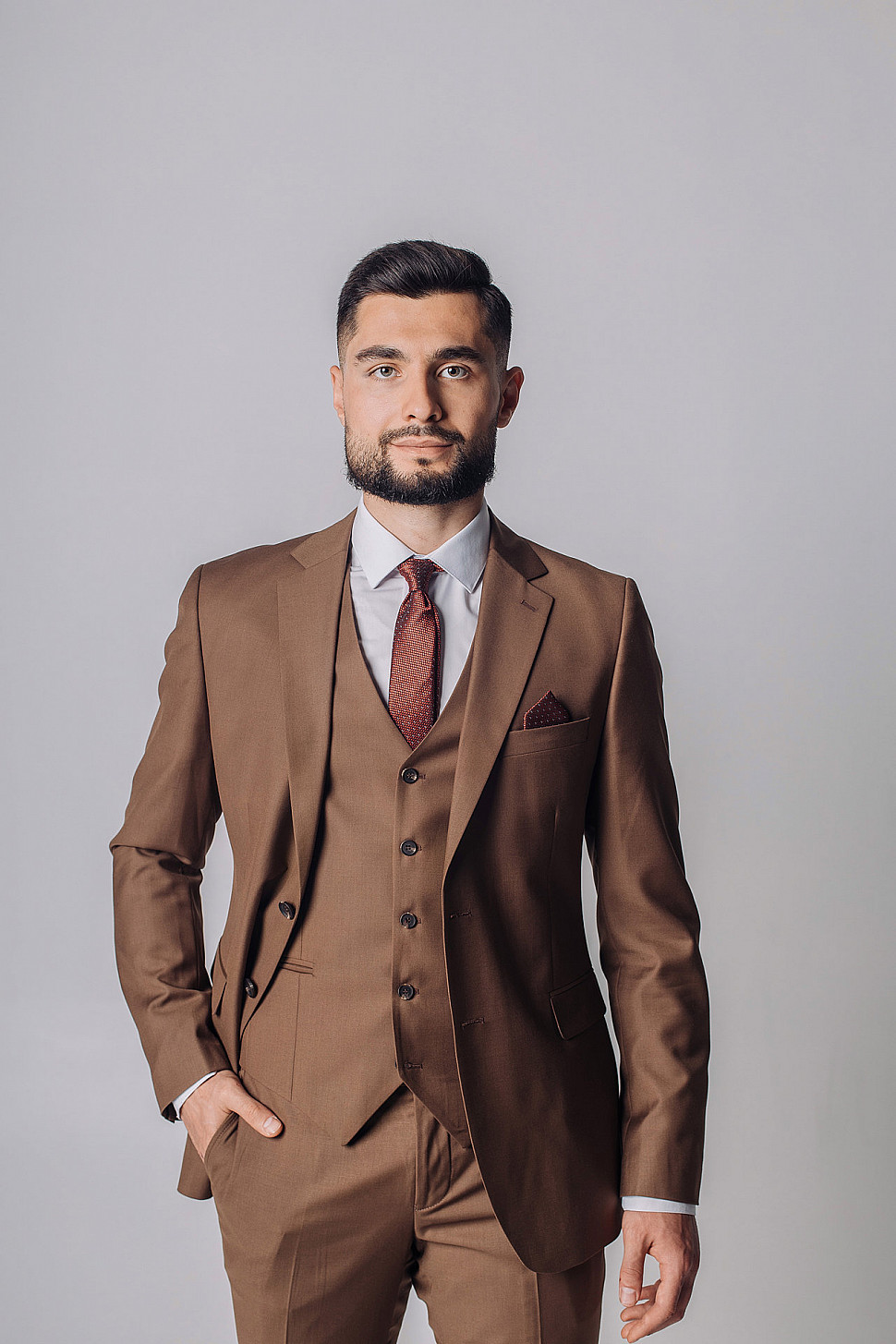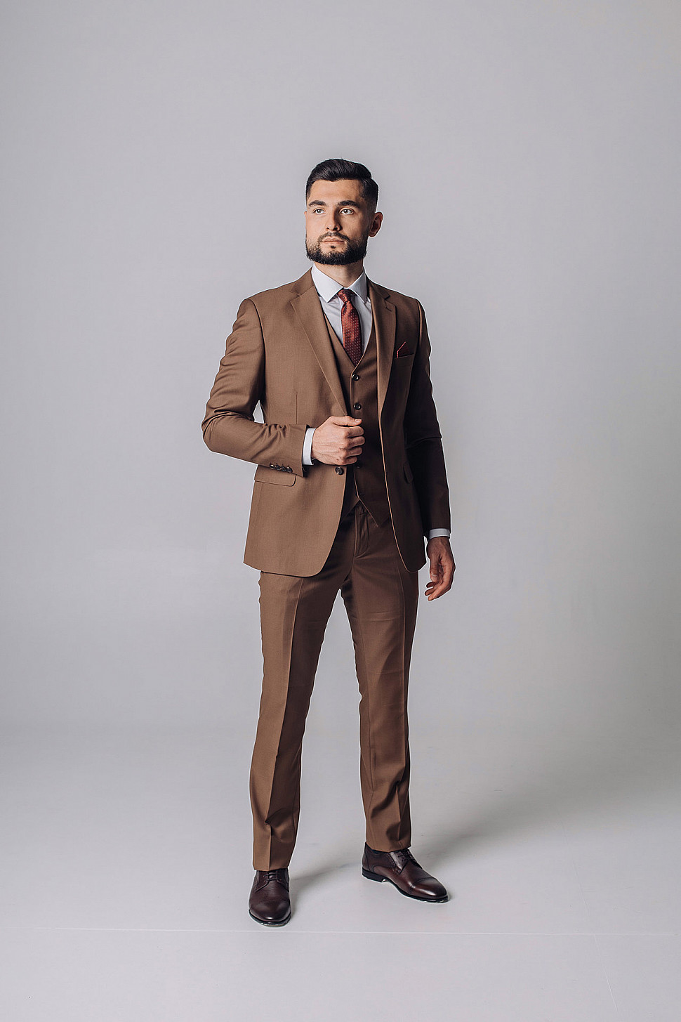 Мужской костюм тройка однотонного коричневого цвета
