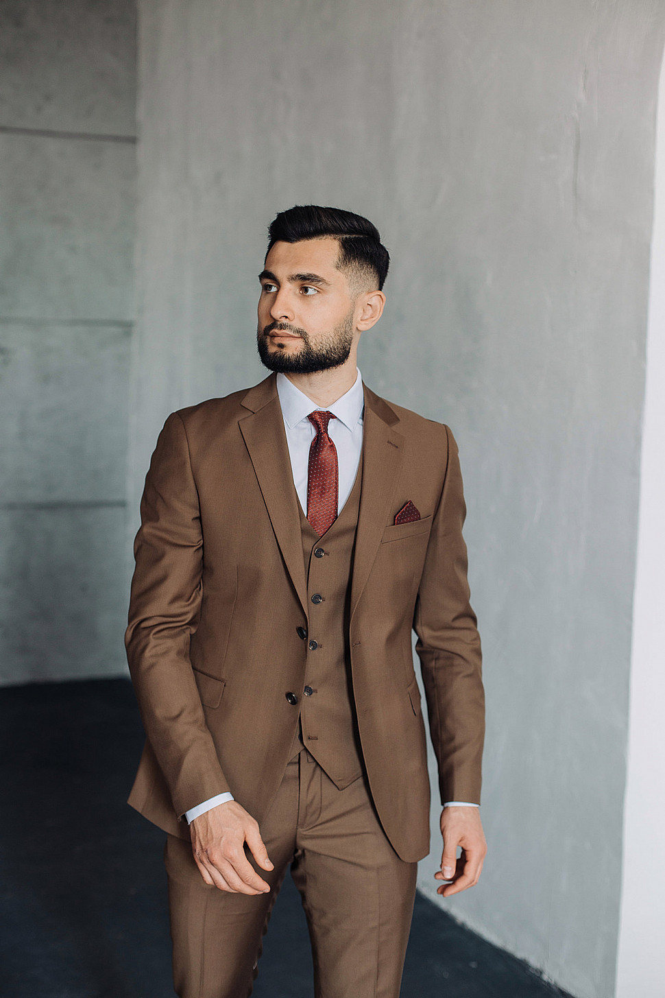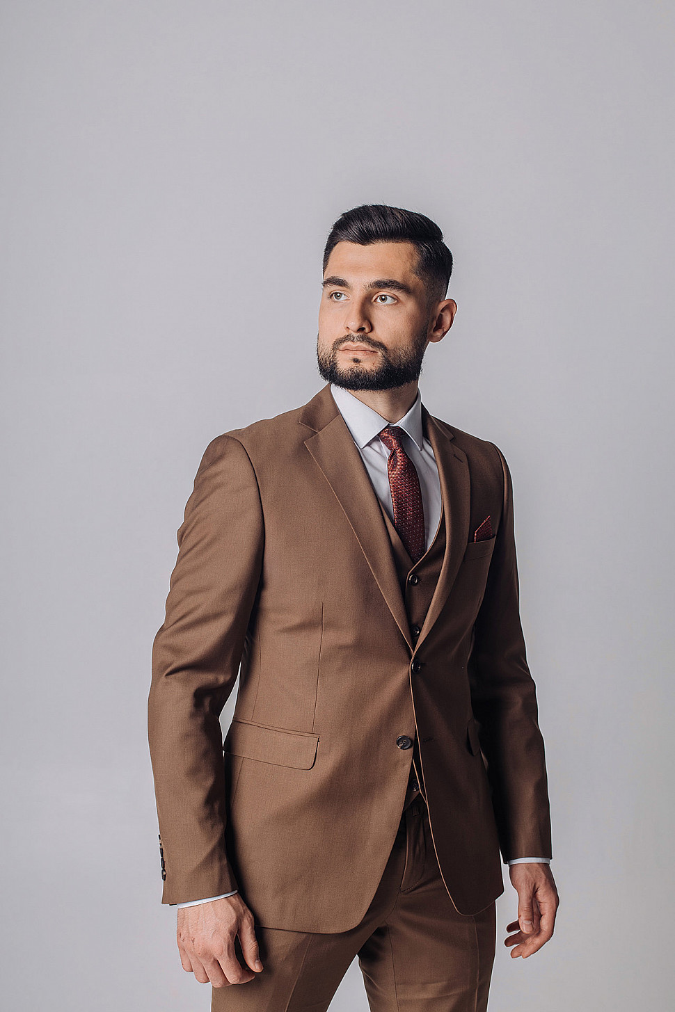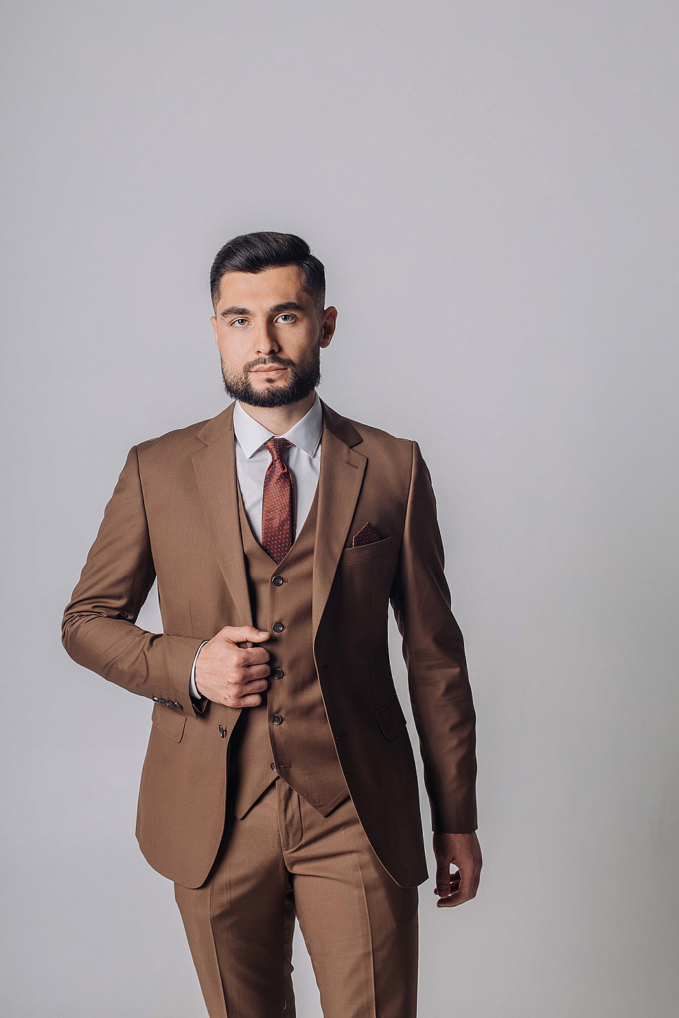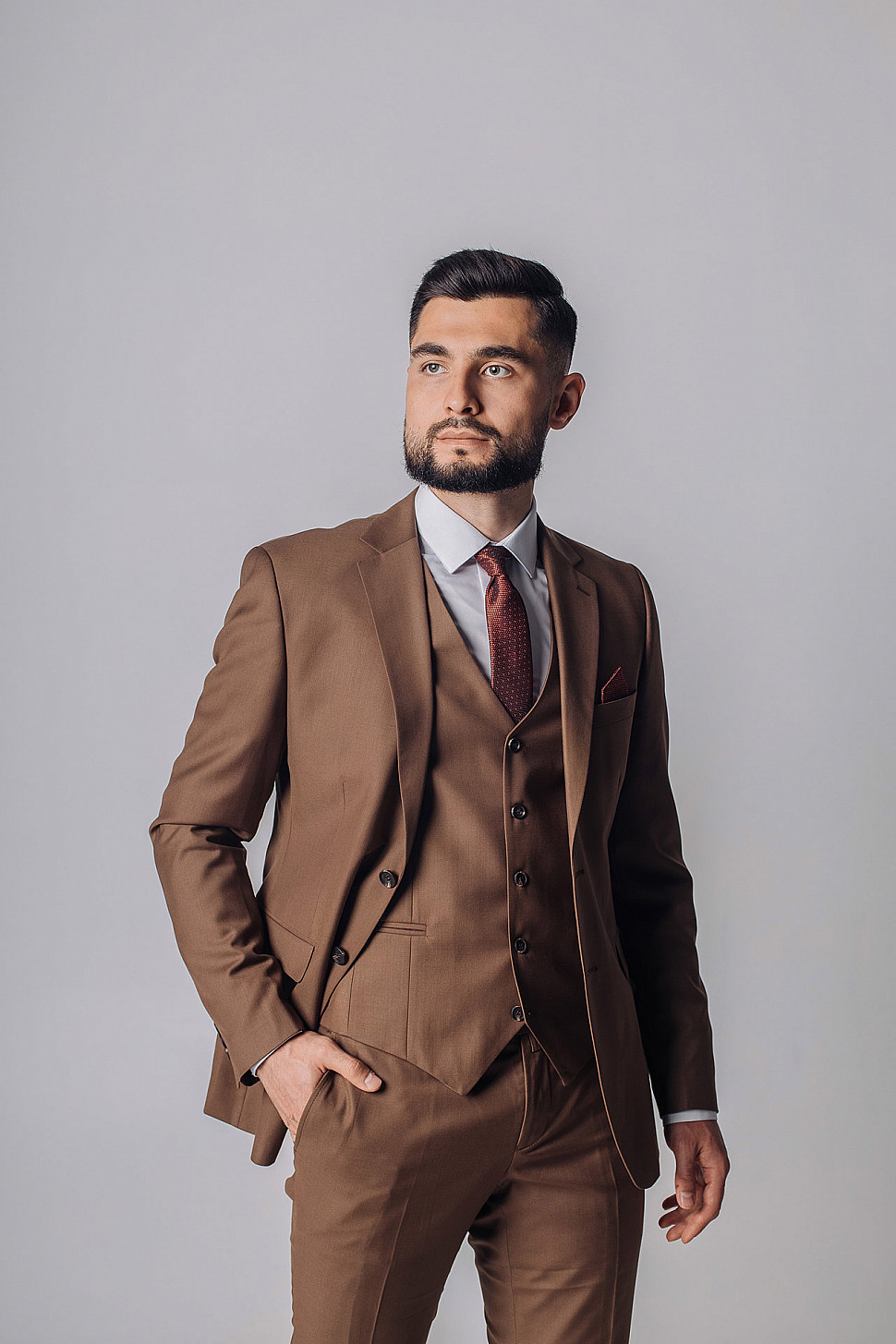 Мужской костюм тройка однотонного коричневого цвета