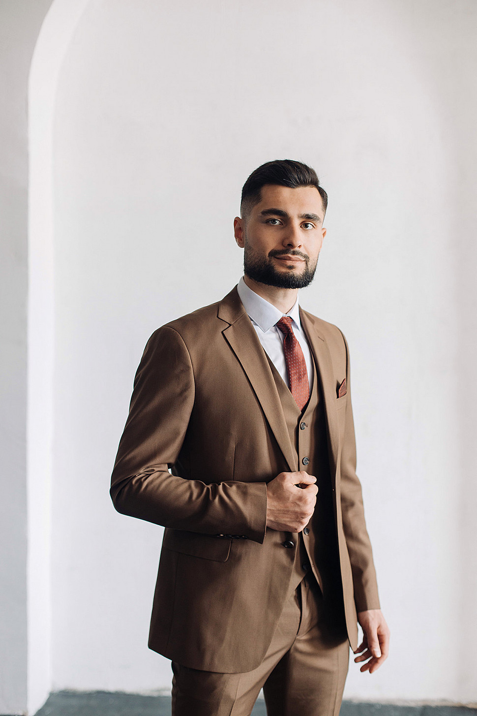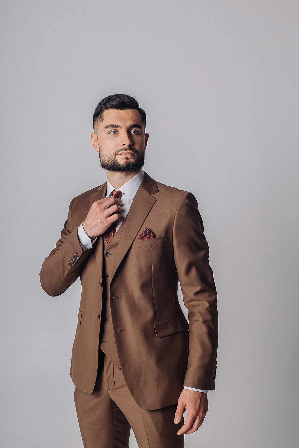 Мужской костюм тройка коричневого цвета текстурный