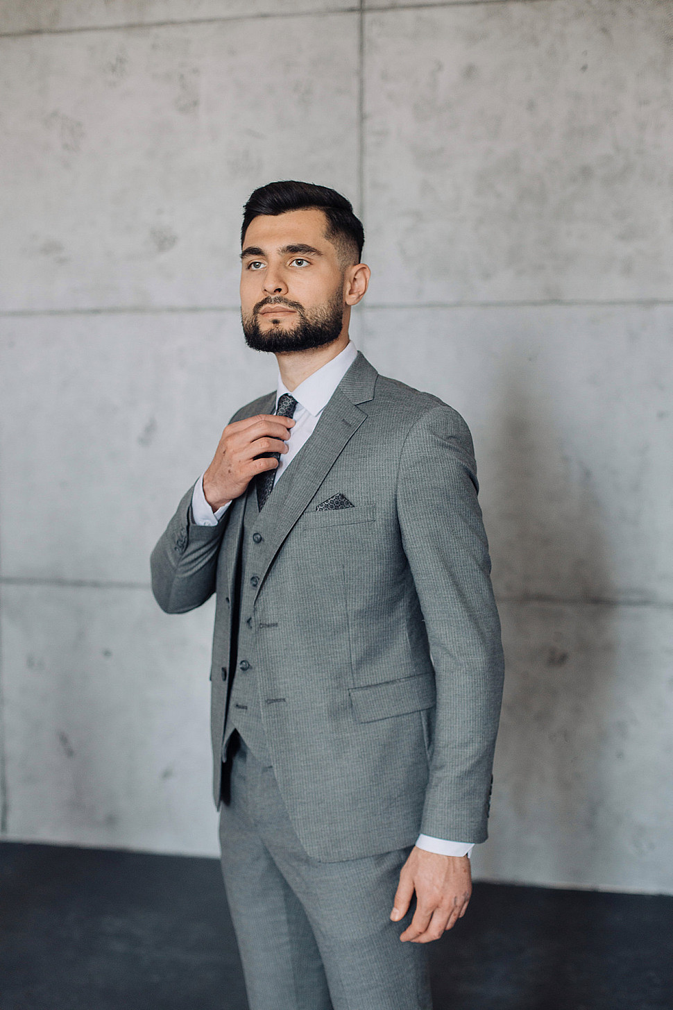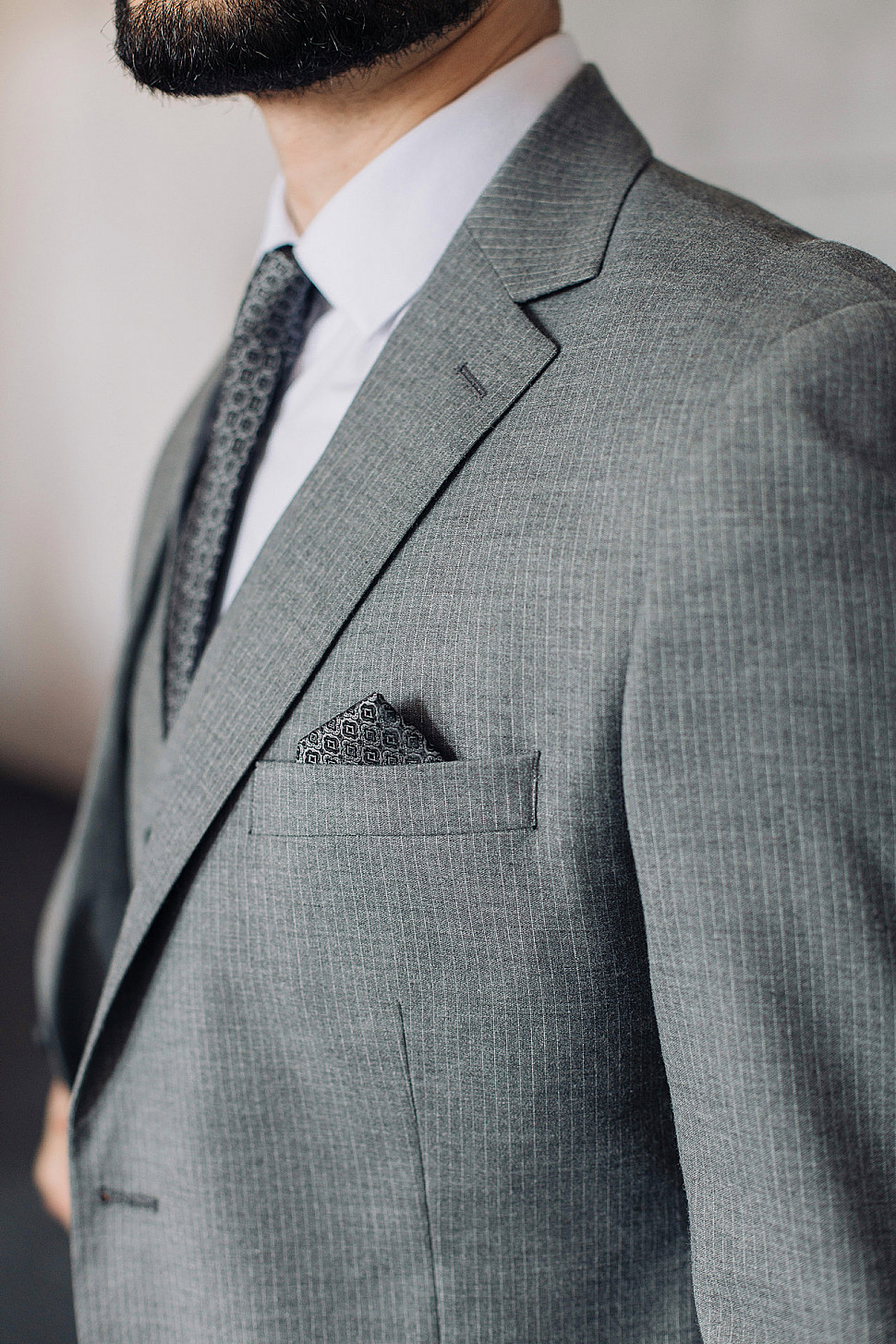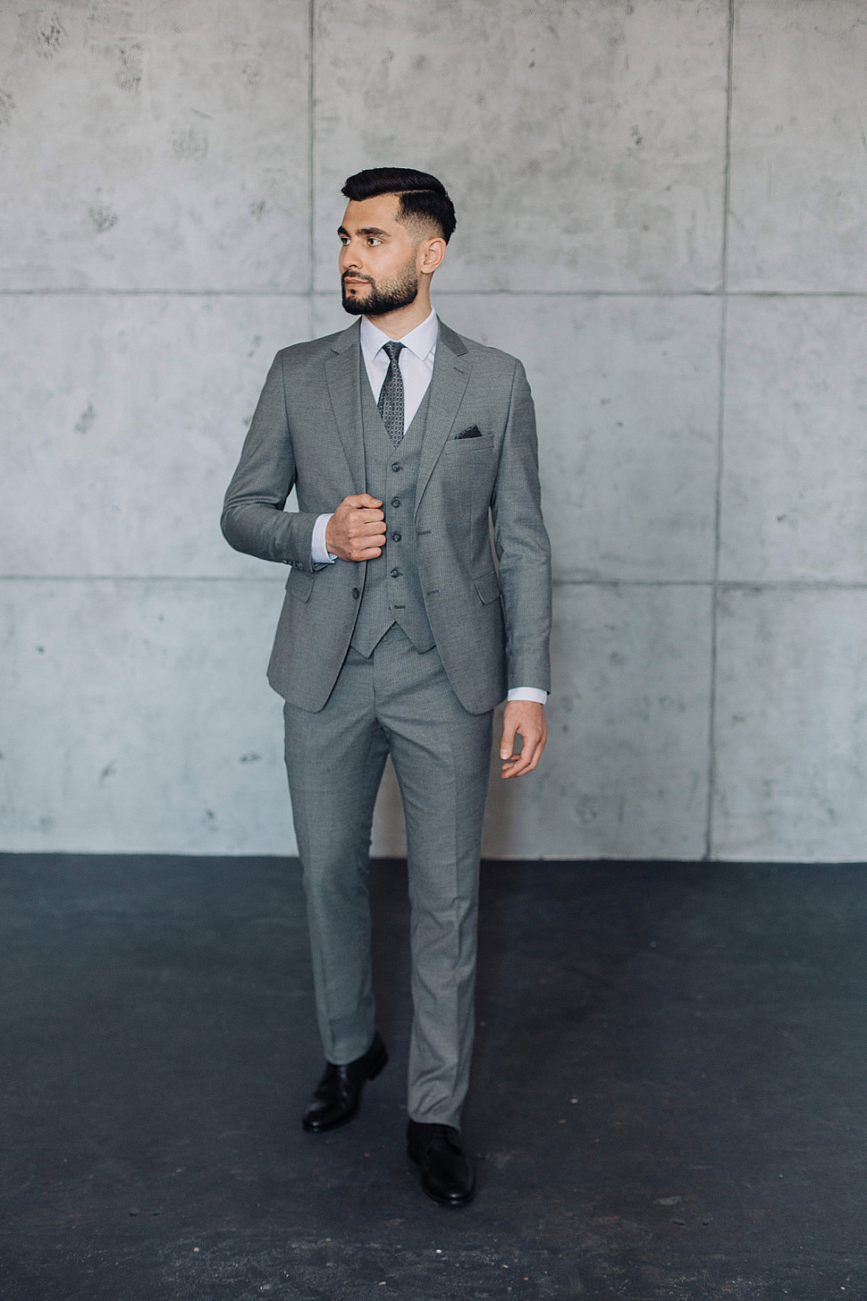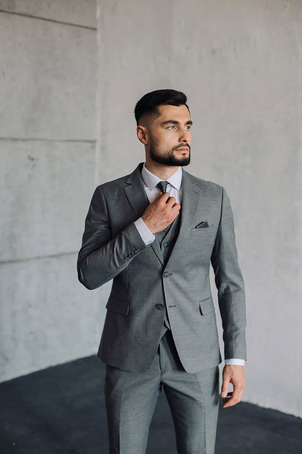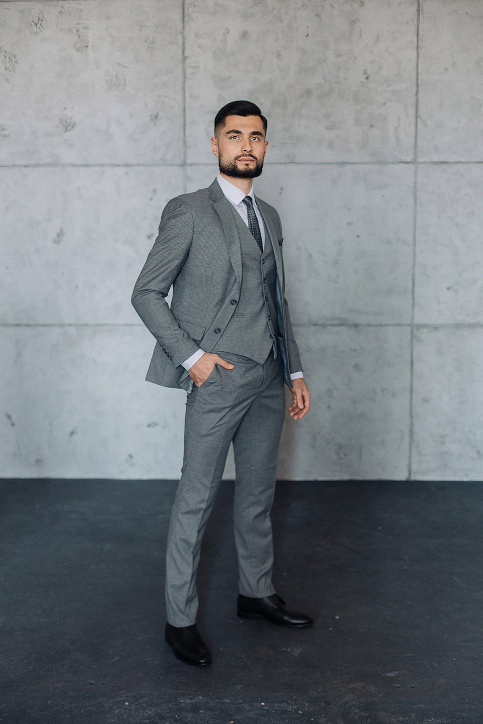 Мужской костюм тройка серого цвета фактурный