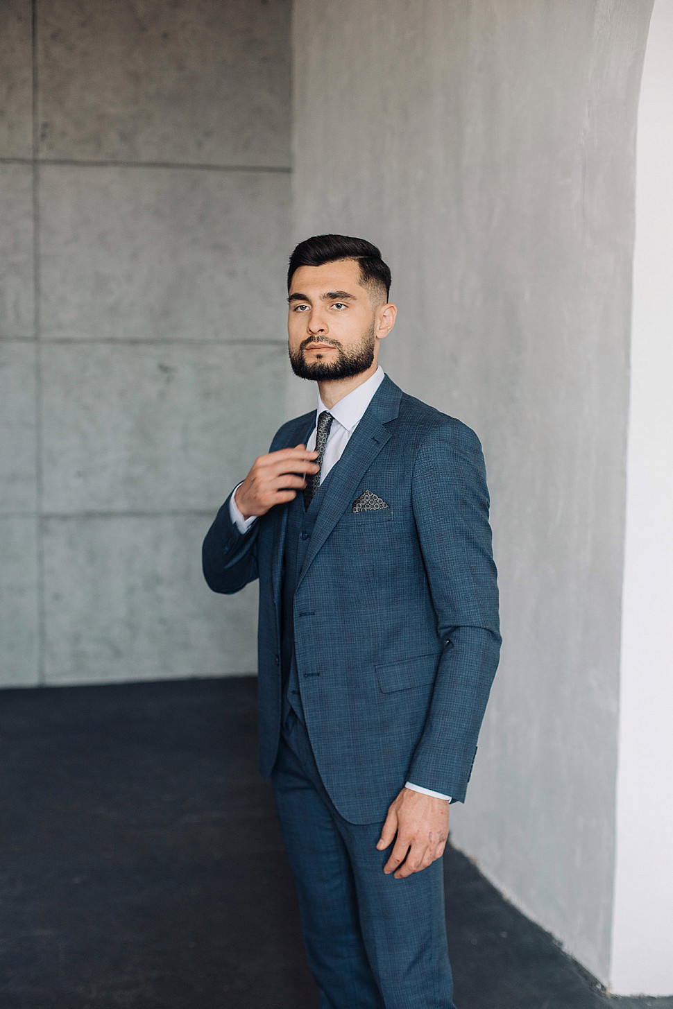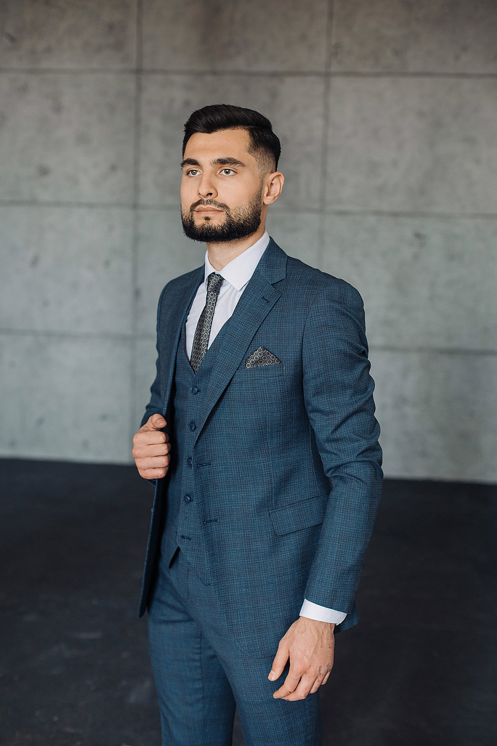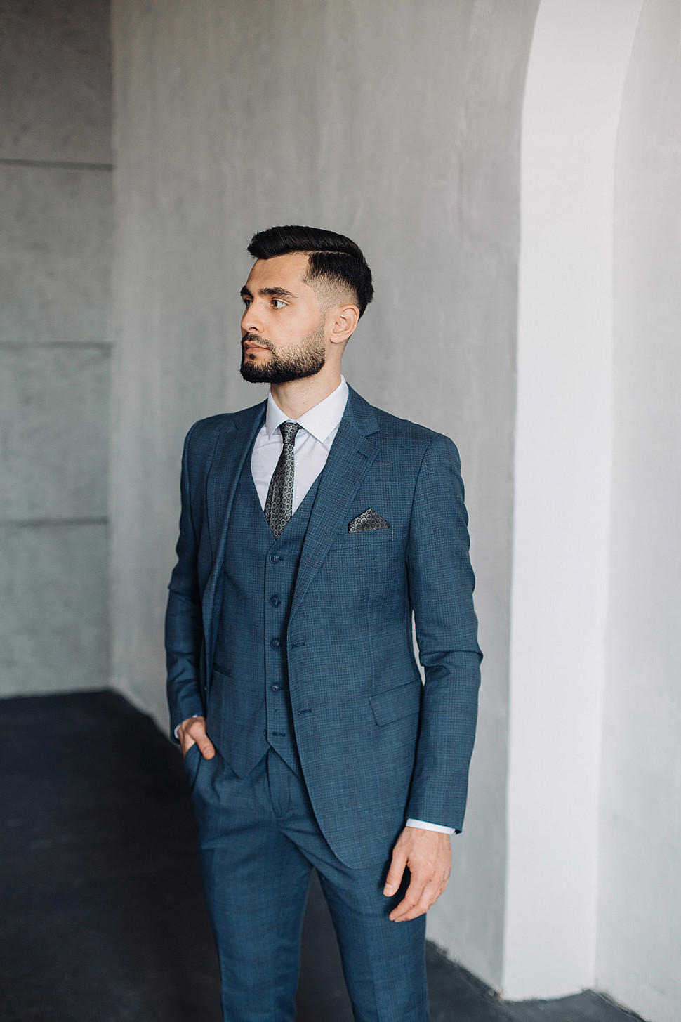 Мужской костюм тройка темно-синего цвета текстурный