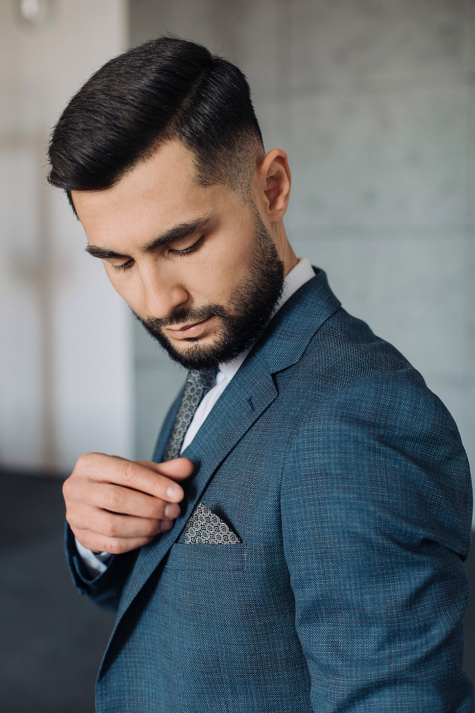 Мужской костюм двойка синего цвета фактурный