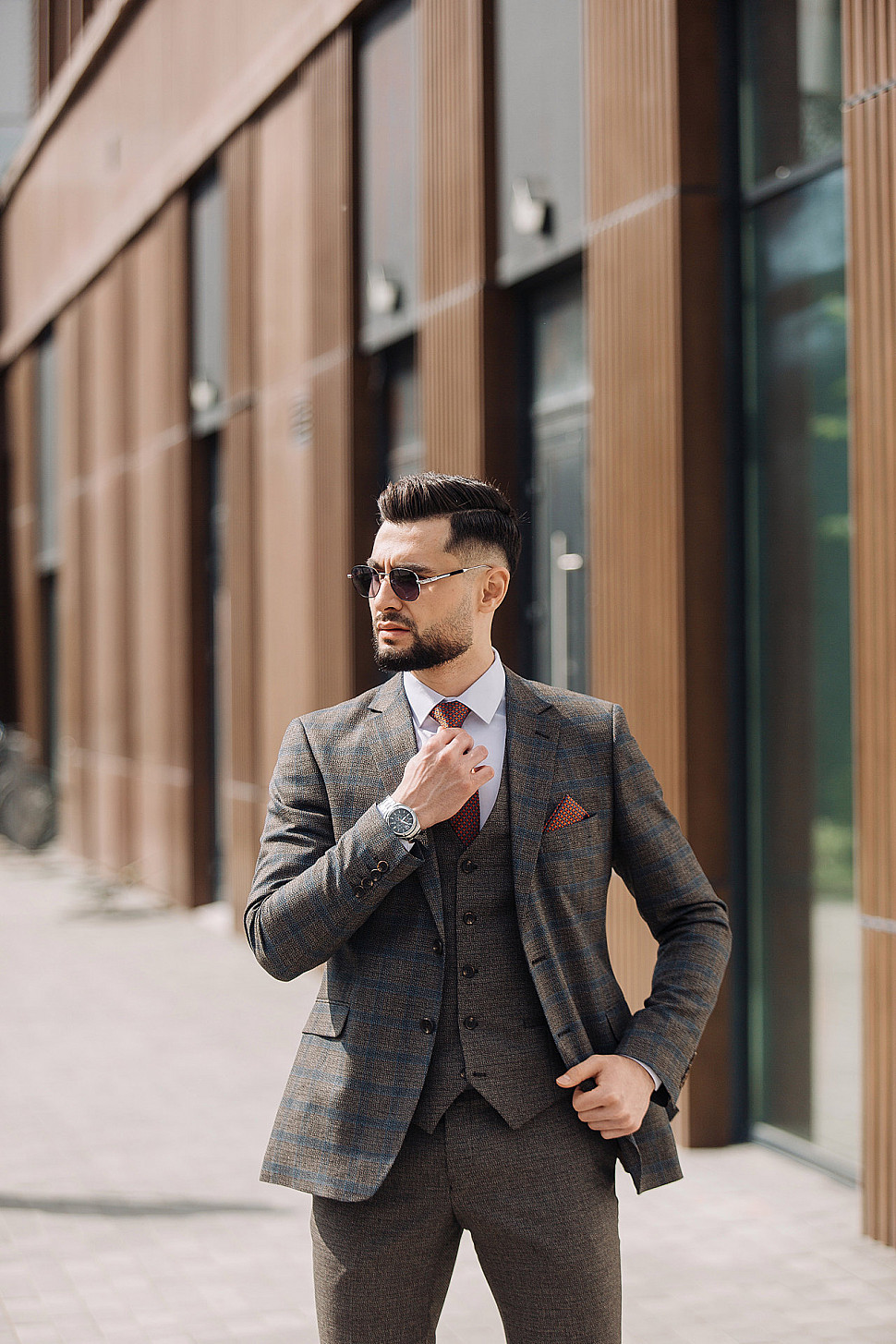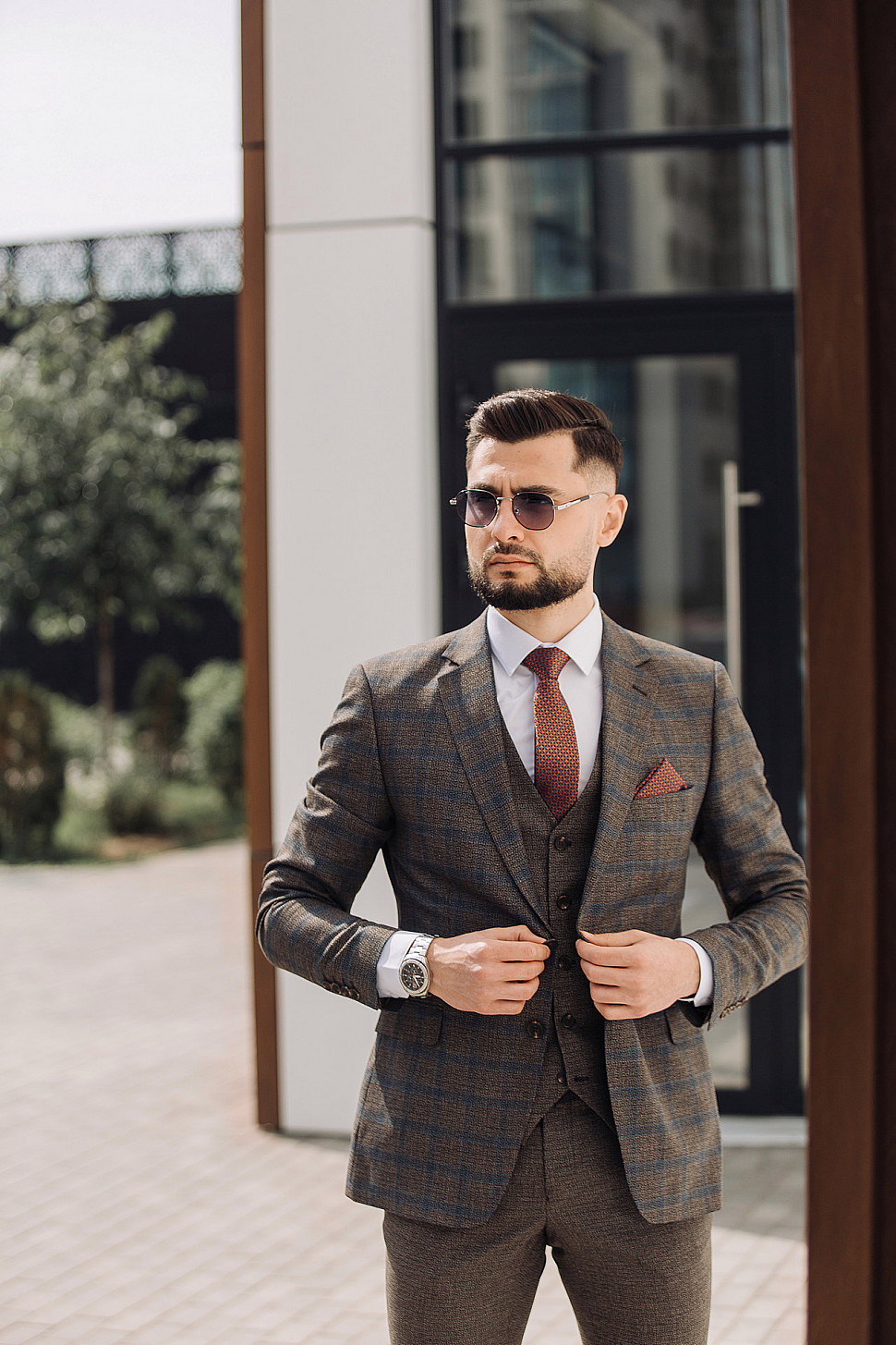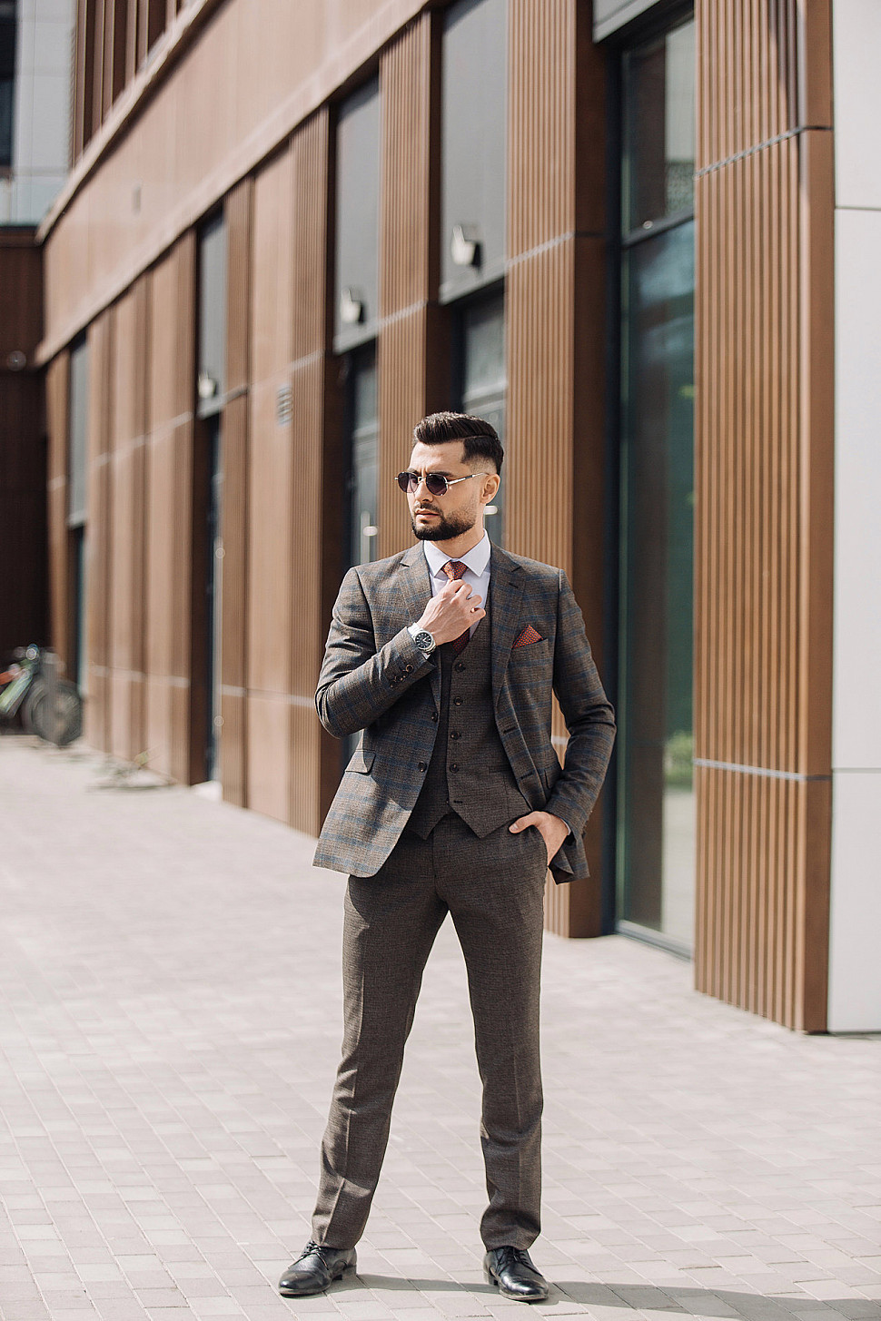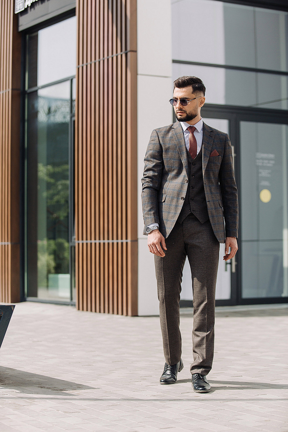Мужской костюм тройка коричневого цвета текстурный