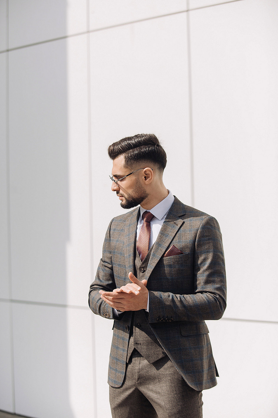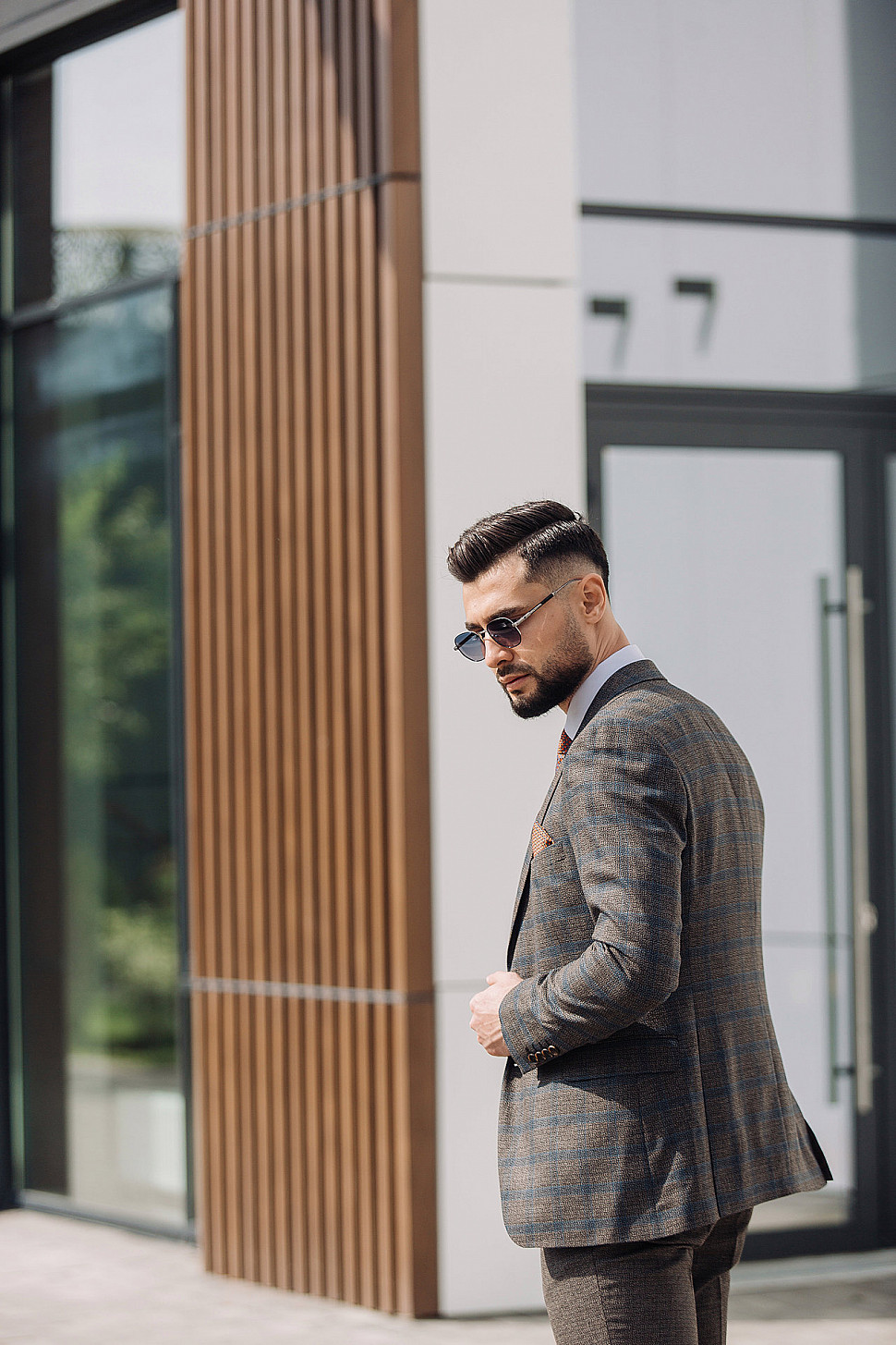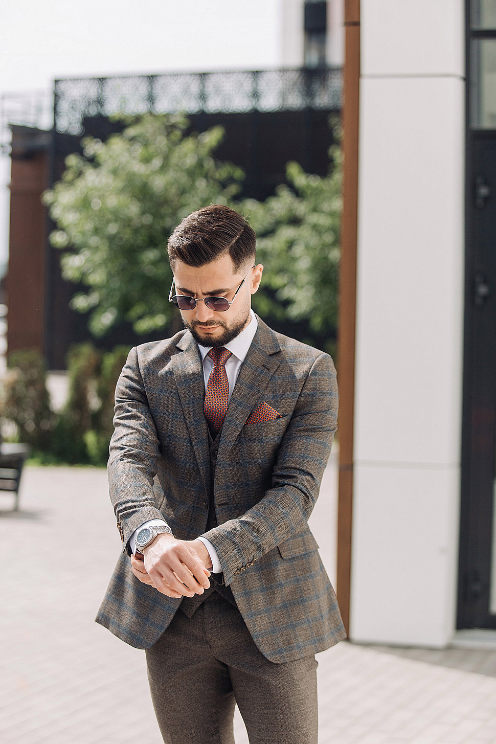 Костюм светло-коричневый двойка в клетку, повседневный и классический образ