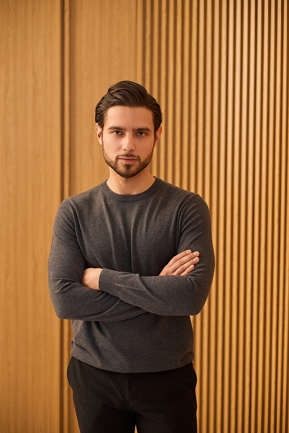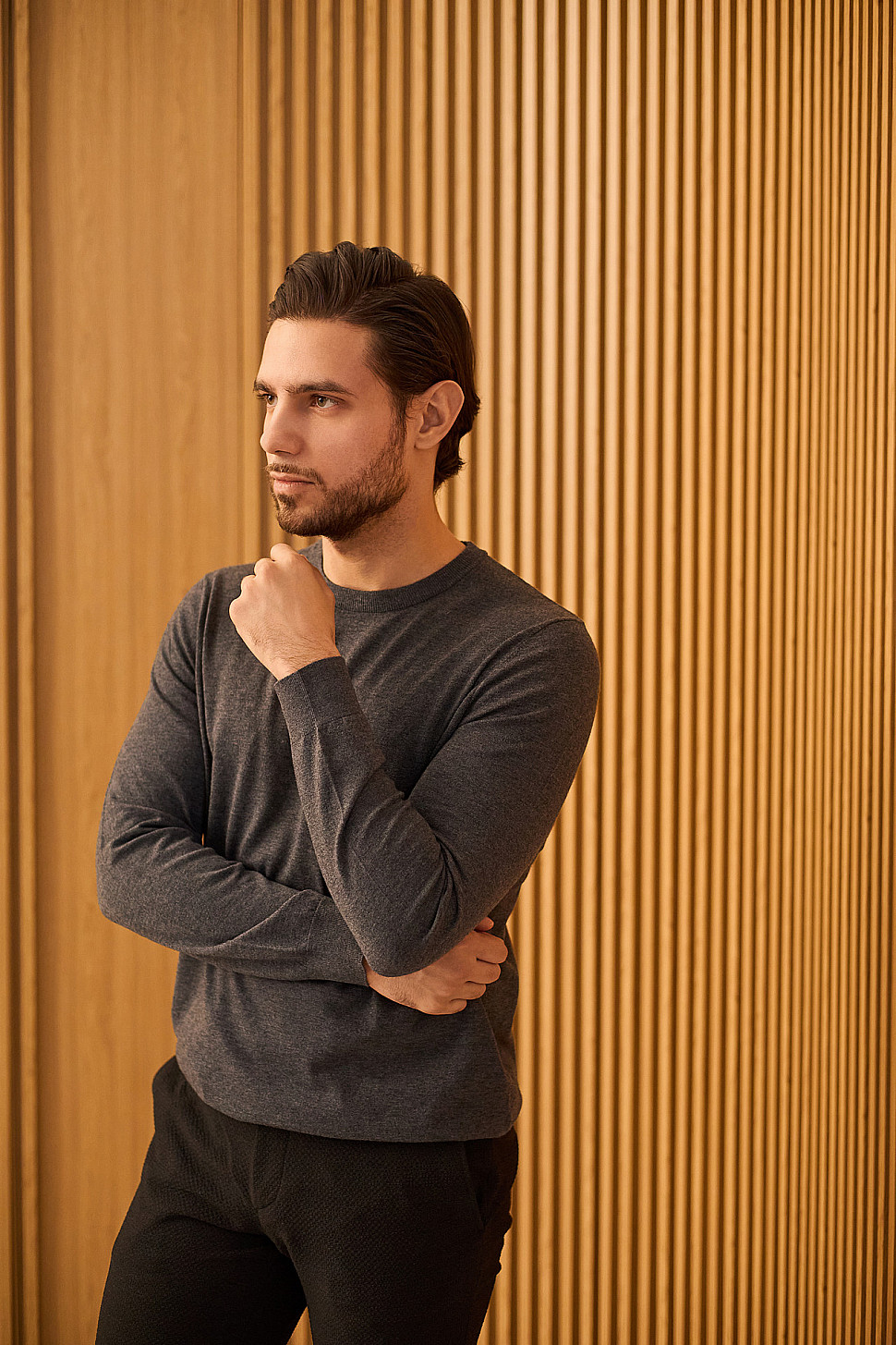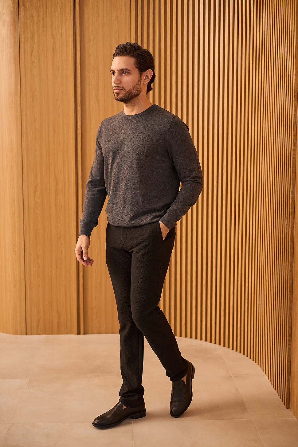 Мужское пальто серого цвета фактурное